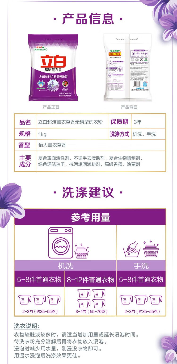 商品名称:立白超洁薰衣香洗衣粉1kg*8包