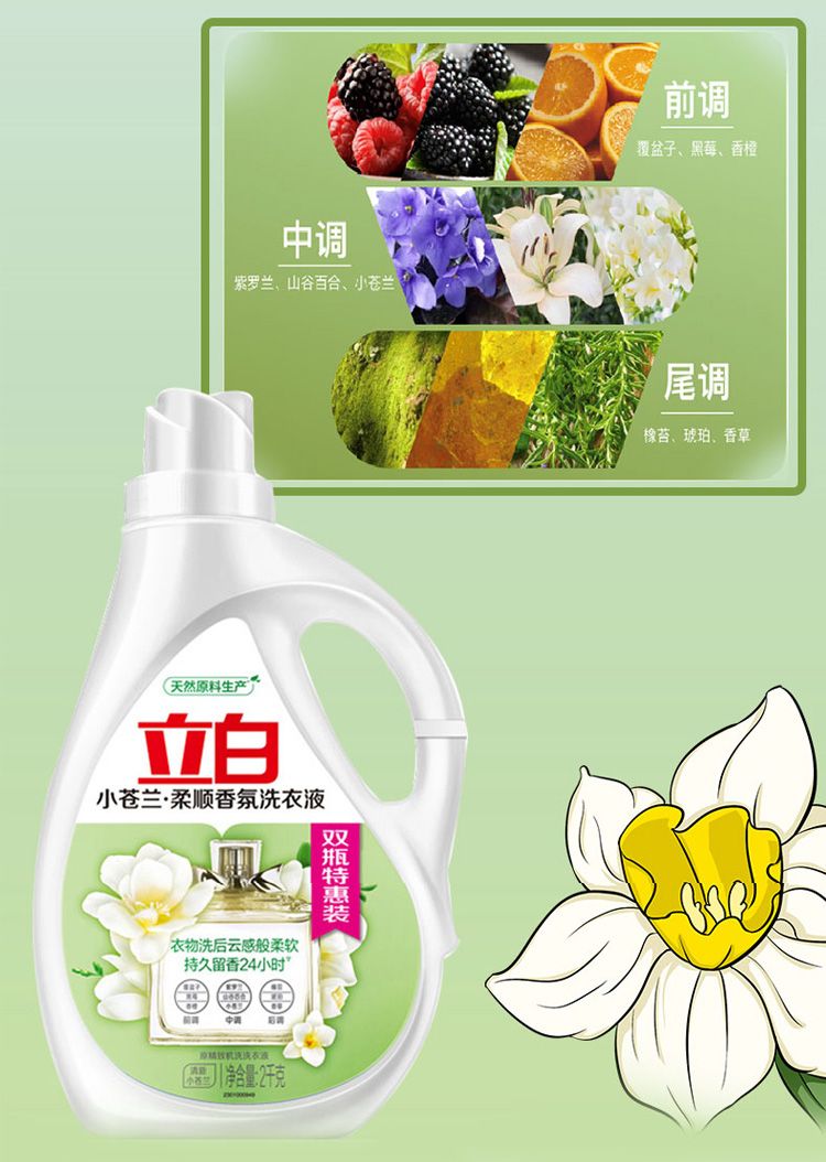 商品名称:立白小苍兰柔顺香氛洗衣液2千克*2