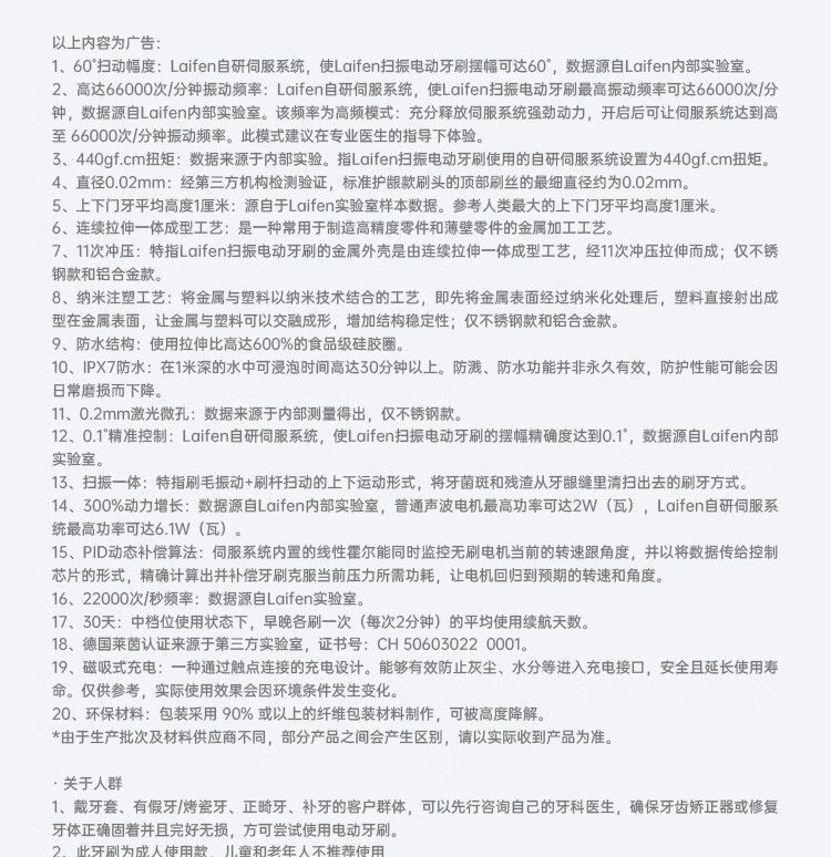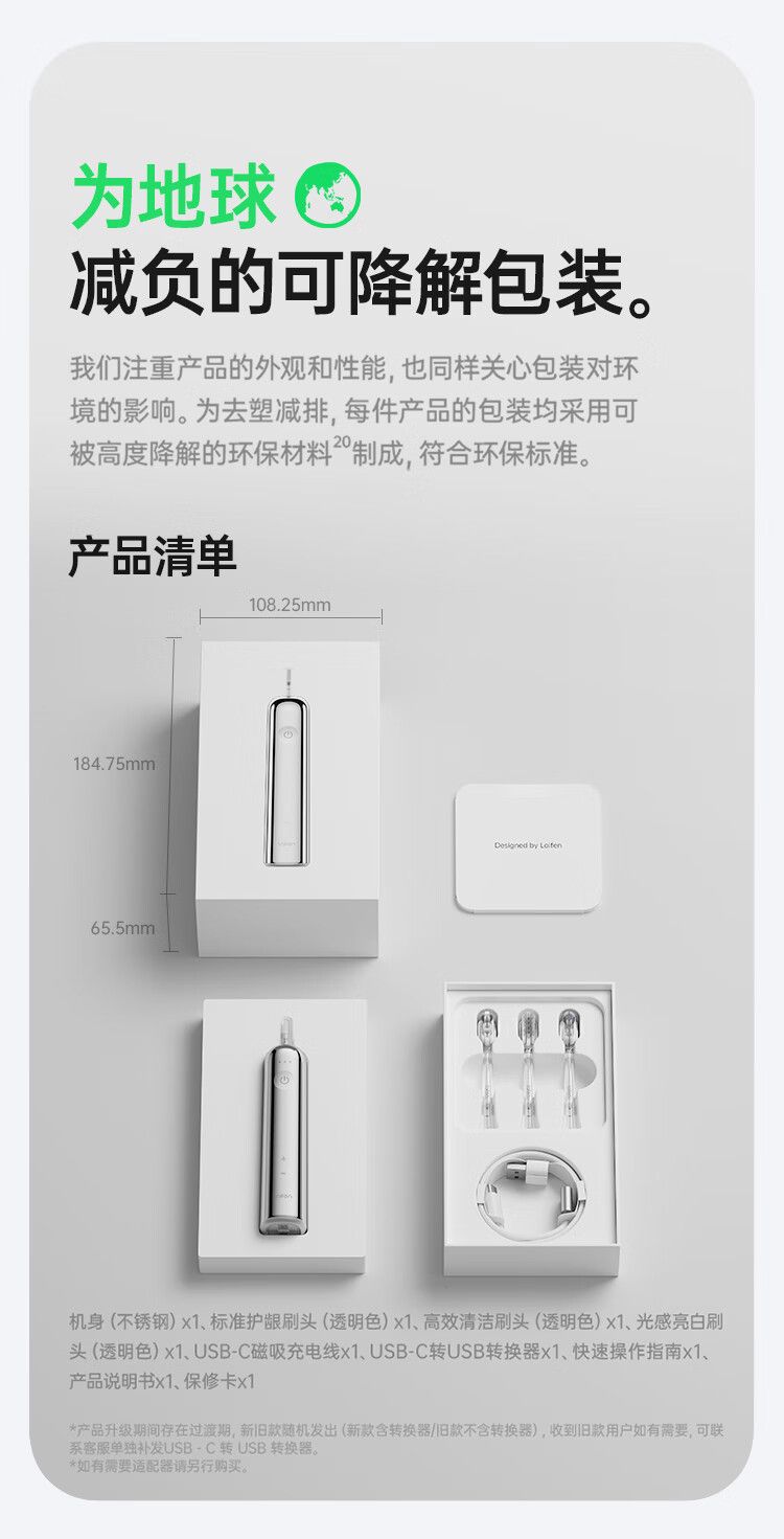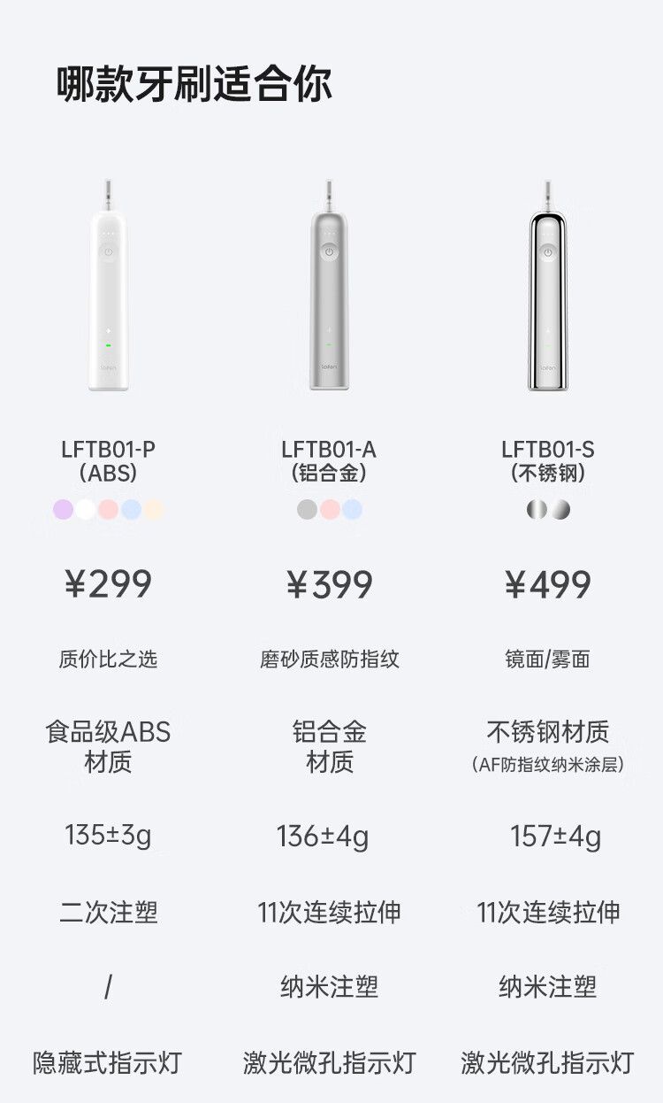 商品名称:徕芬 电动牙刷 不锈钢 镜面