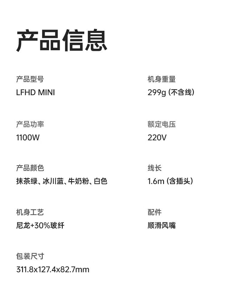 商品名称:徕芬高速吹风机 Mini
