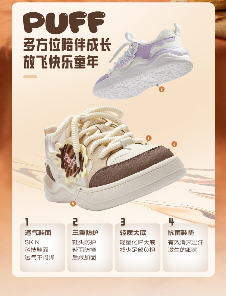 泡芙软弹板鞋童鞋女童春秋儿童轻便透气低帮鞋子甜美百搭舒适休闲 055429