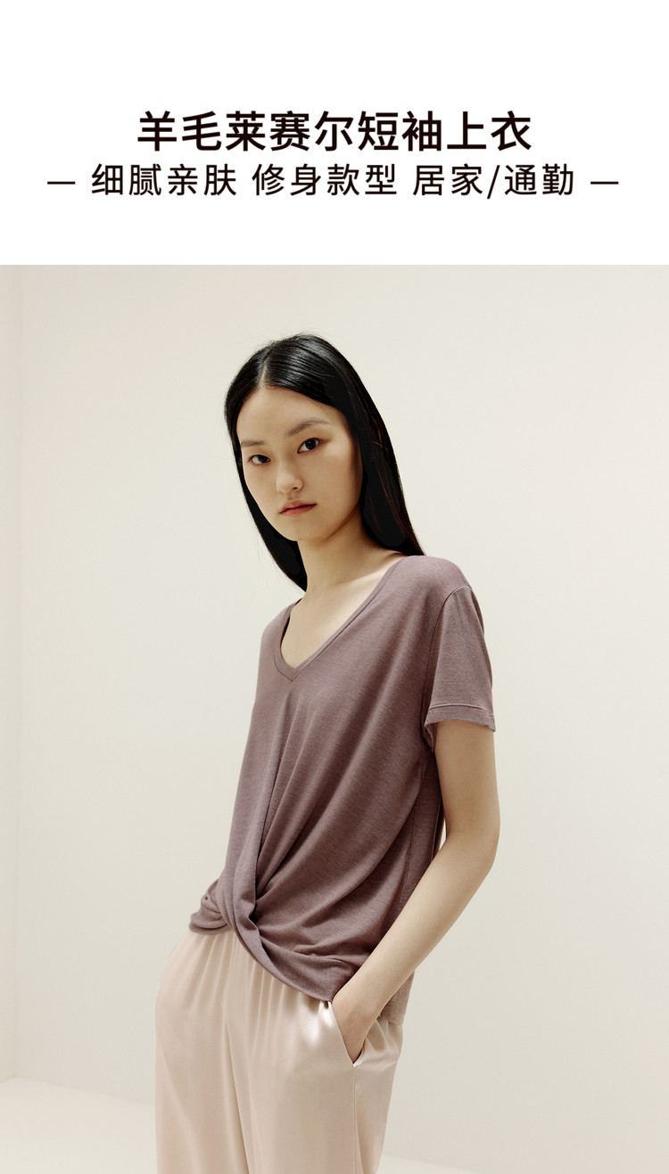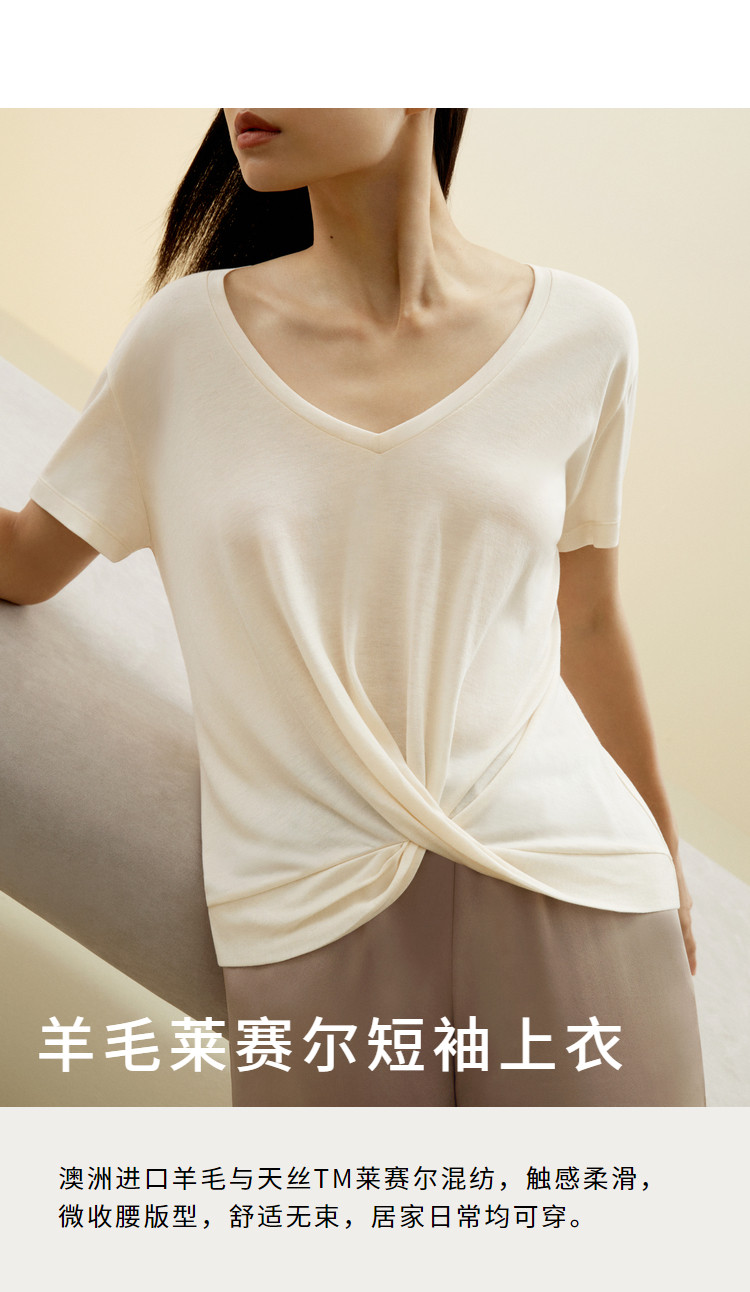 商品名称:NEIWAI内外女士羊毛莱赛尔短袖上衣日常居家可外穿细腻 985034
