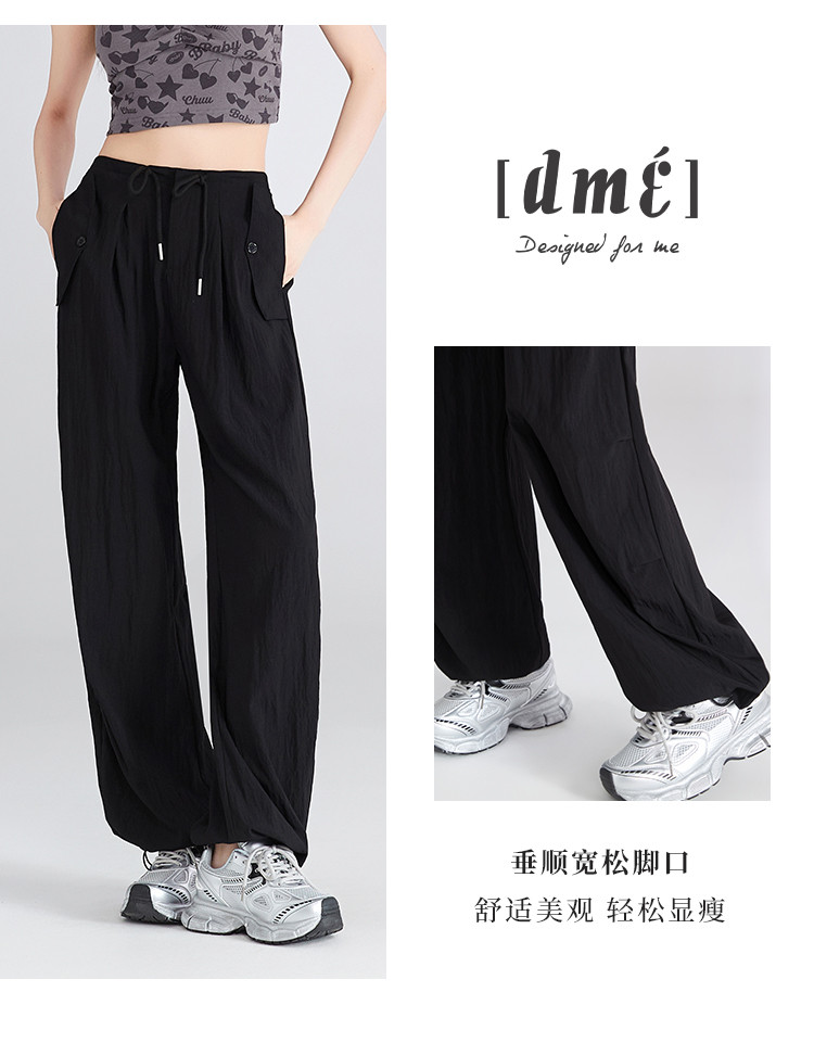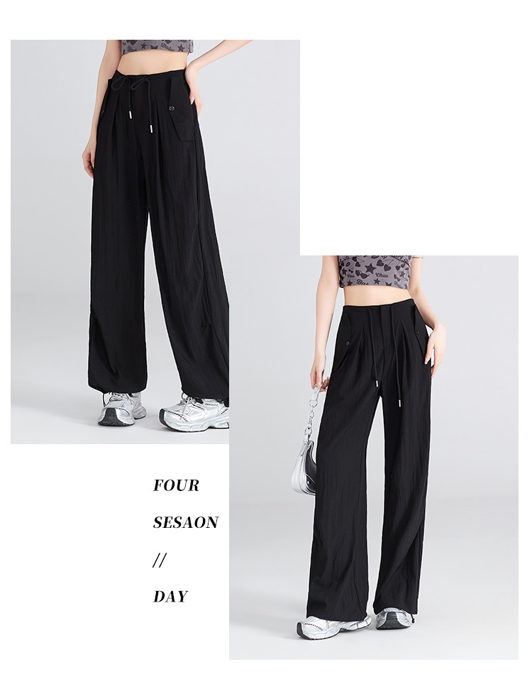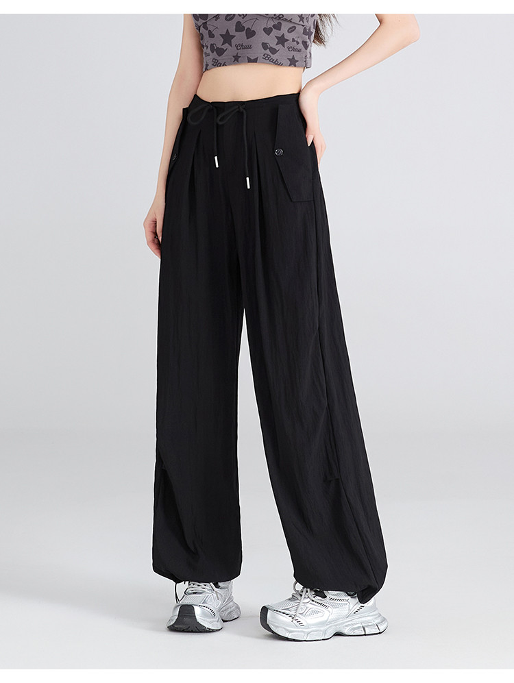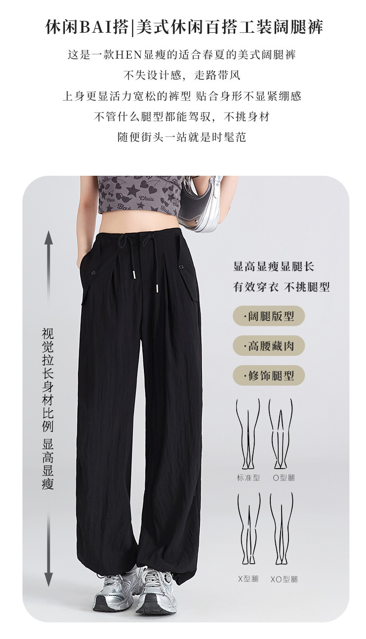 夏季薄款透气工装山本裤一裤多穿抽绳&捏褶设计女款阔腿休闲长裤 984193