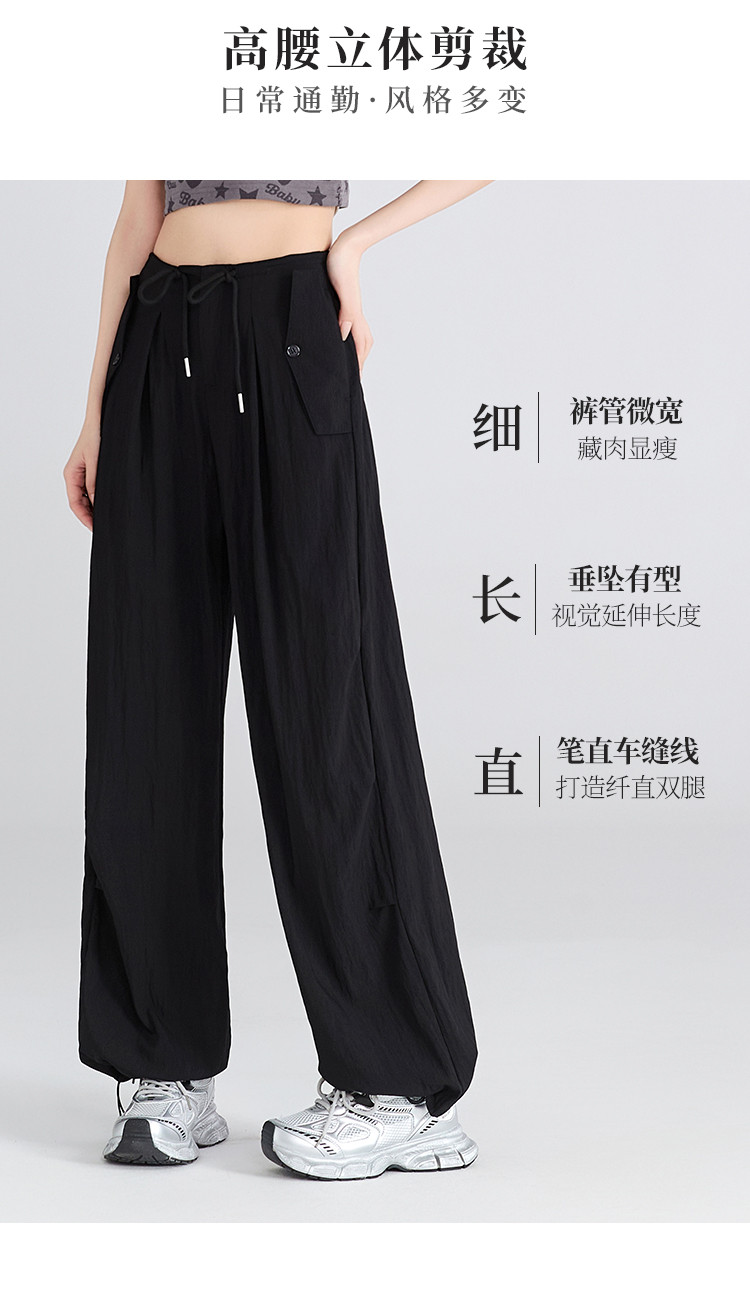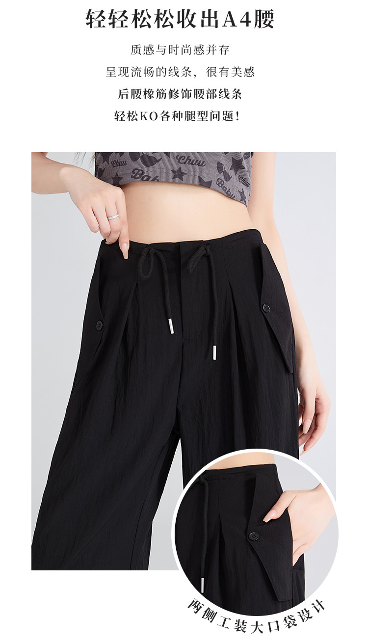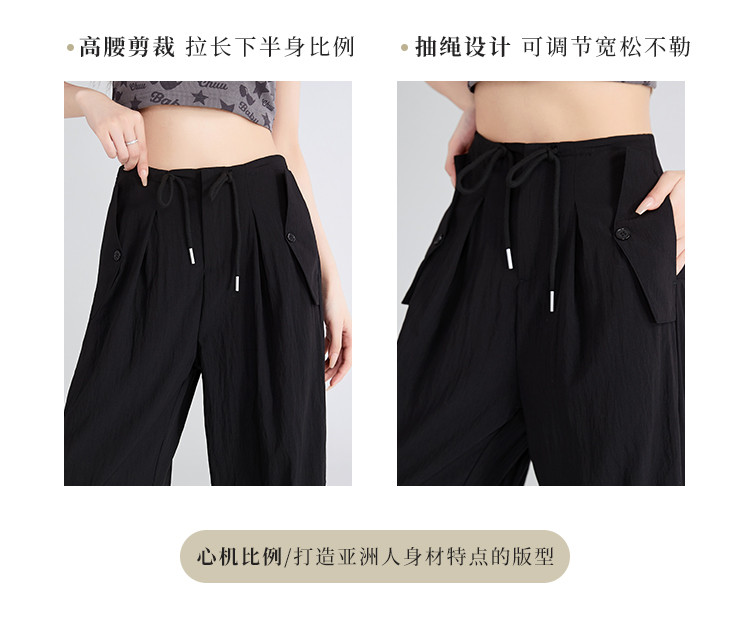 商品名称:夏季薄款透气工装山本裤一裤多穿抽绳&捏褶设计女款阔腿休闲长裤 984193
