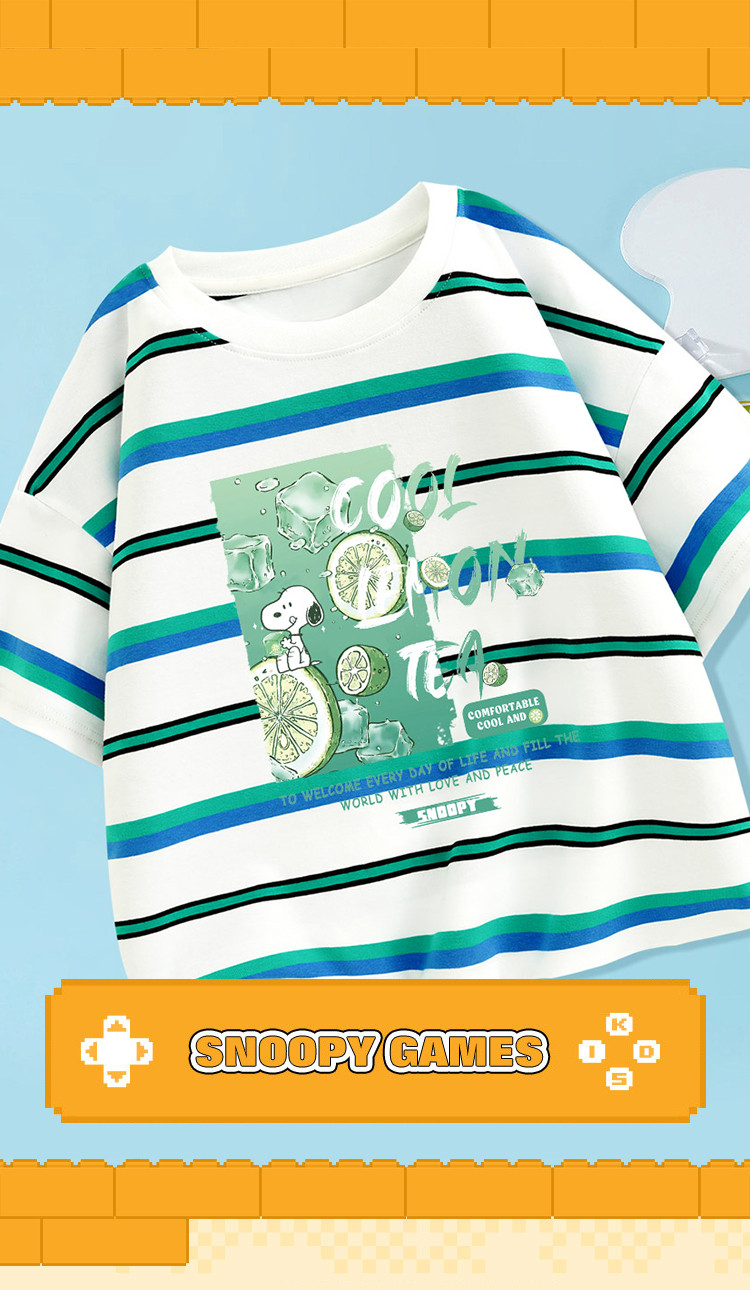 商品名称:男童短袖t恤2025夏装儿童撞色条纹中大童套头休闲t恤 844191
