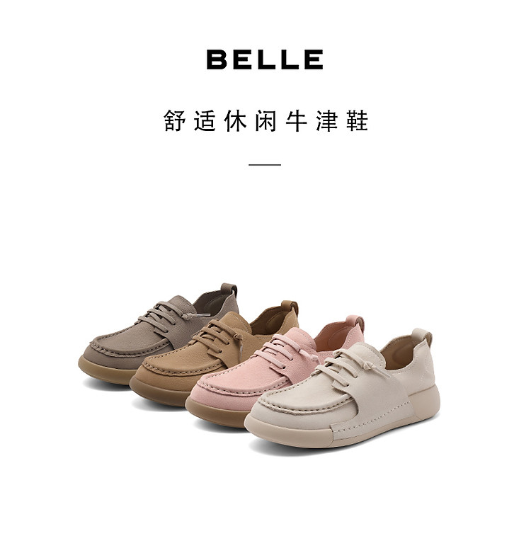 【吐司家族】百丽女鞋子方糖吐司袋鼠鞋软皮软底深口单鞋牛津鞋 367706