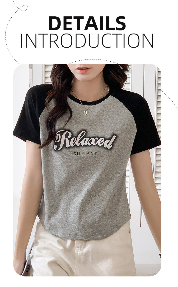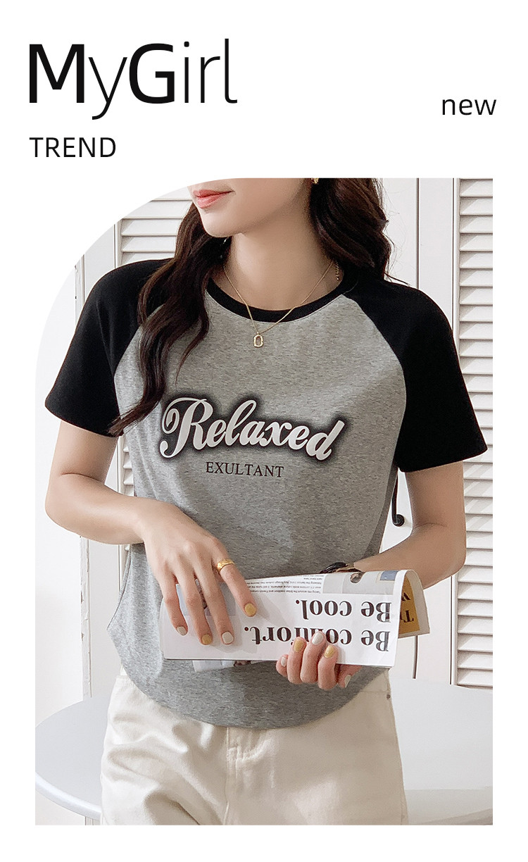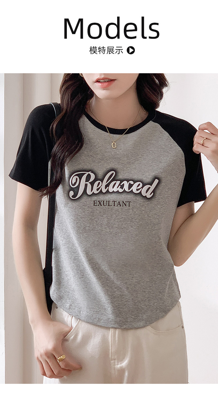 商品名称:短袖t恤女装时尚百搭撞色短袖女夏印花短款上衣女士t恤 631640