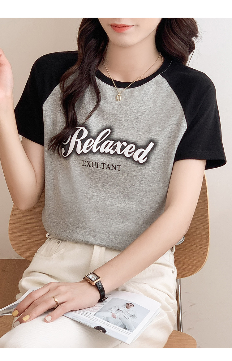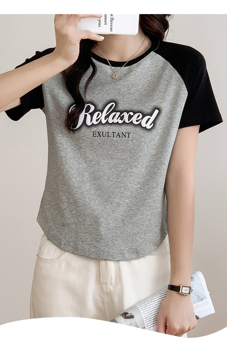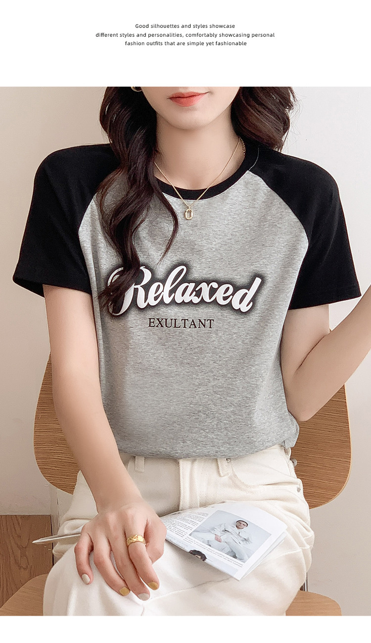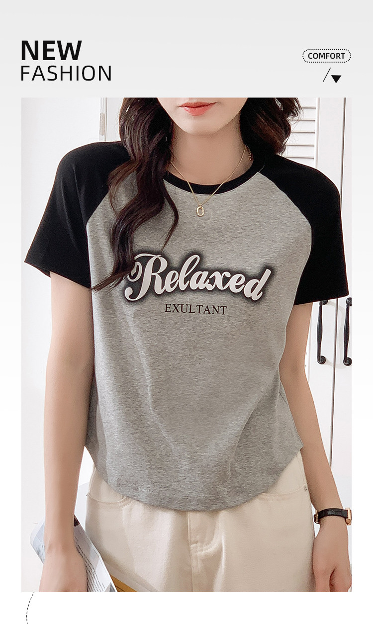 商品名称:短袖t恤女装时尚百搭撞色短袖女夏印花短款上衣女士t恤 631640