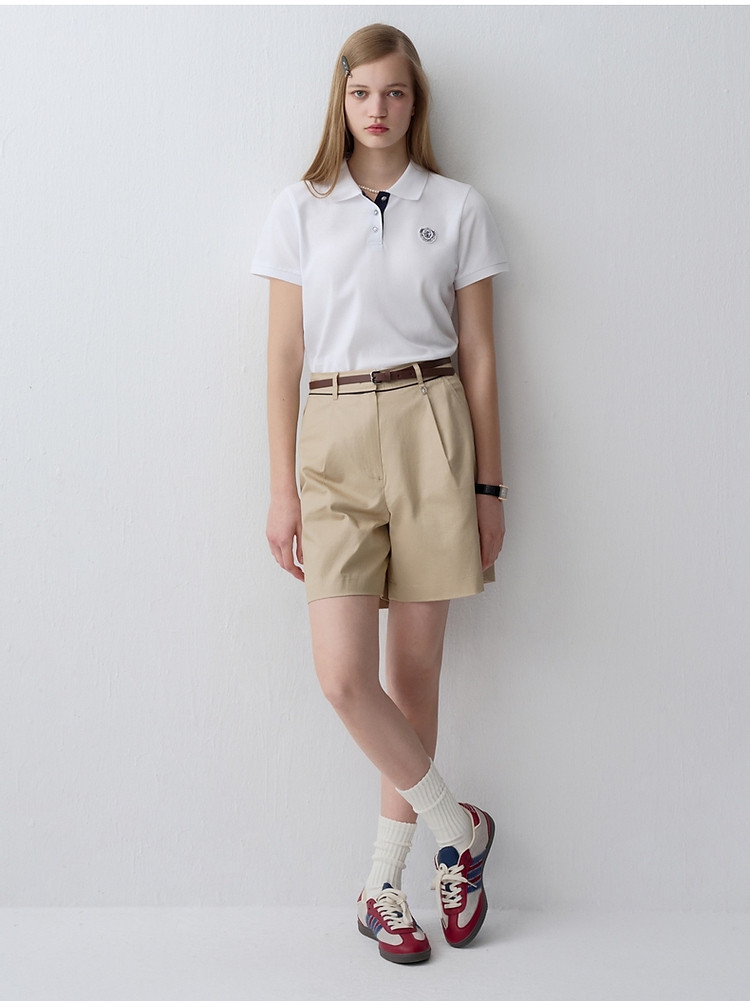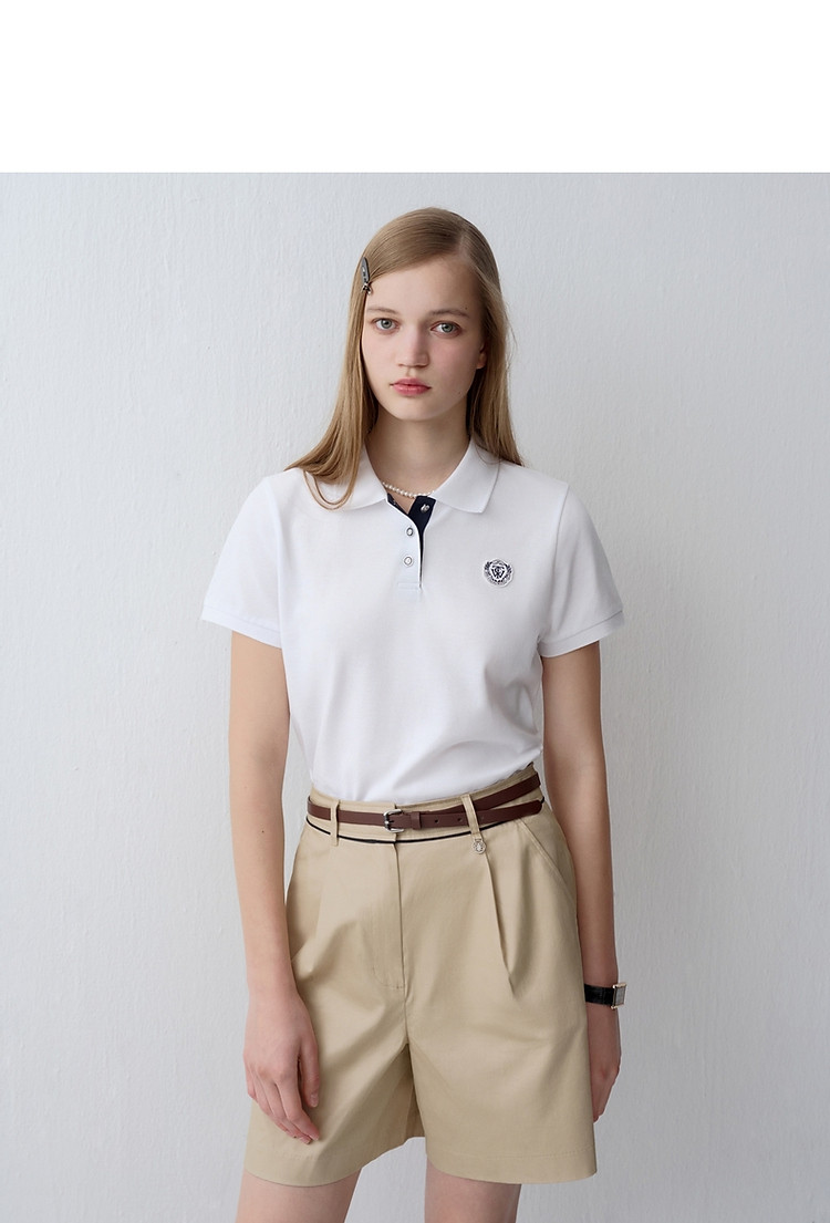 商品名称:【长绒棉】小熊女简约休闲通勤学院风短袖POLO衫T恤 300417