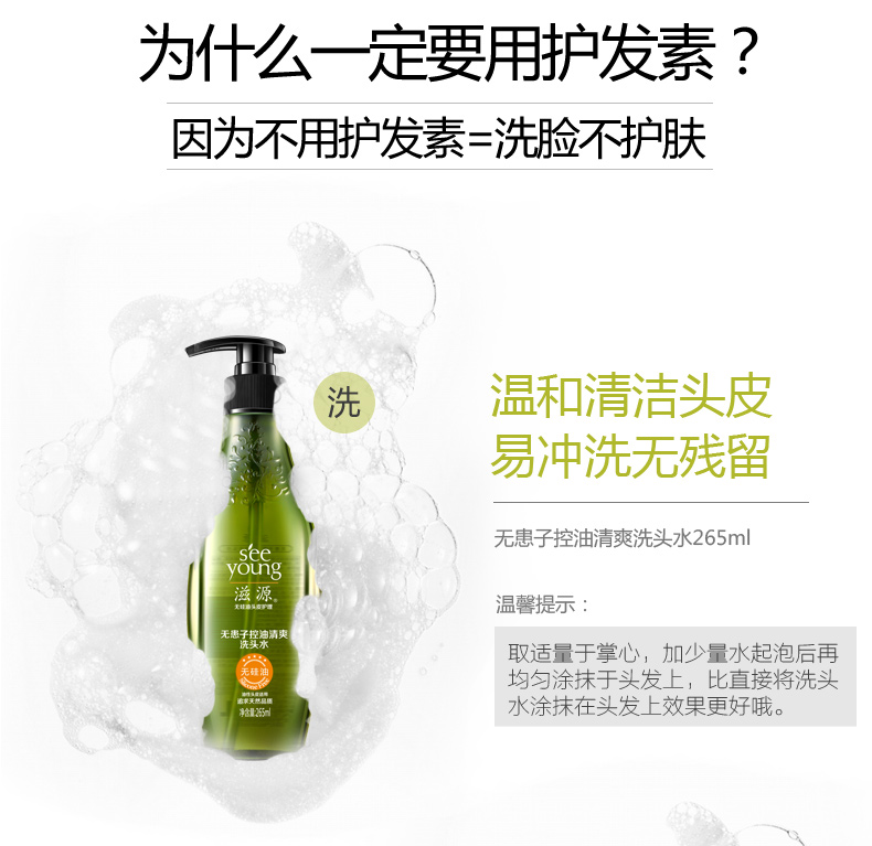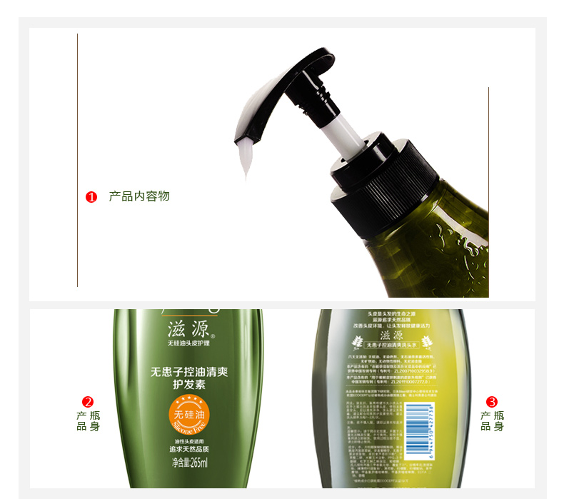 商品名称:滋源 无患子控油清爽护发素 265ml 油性头皮适用 温和清洁 调节水油平衡