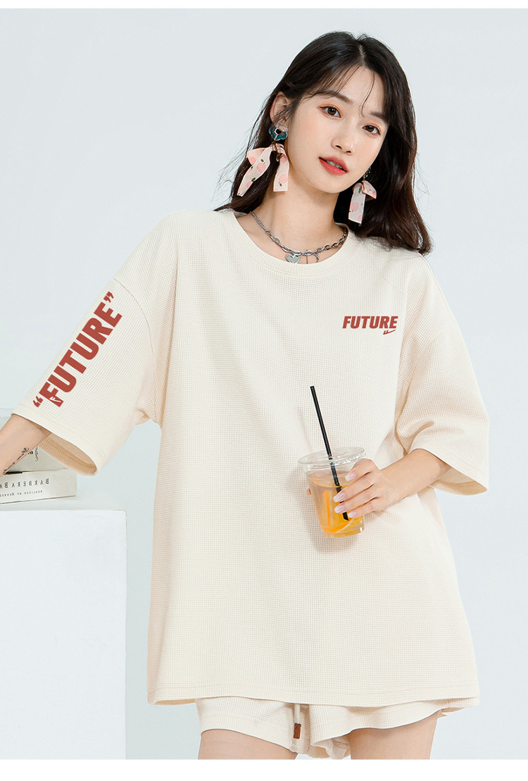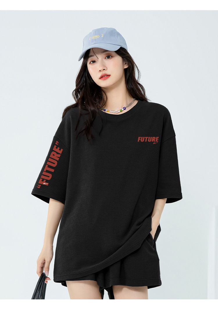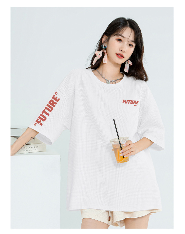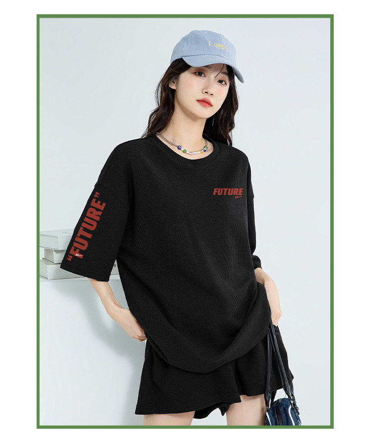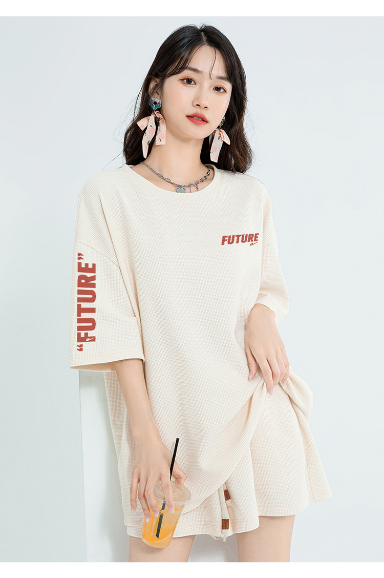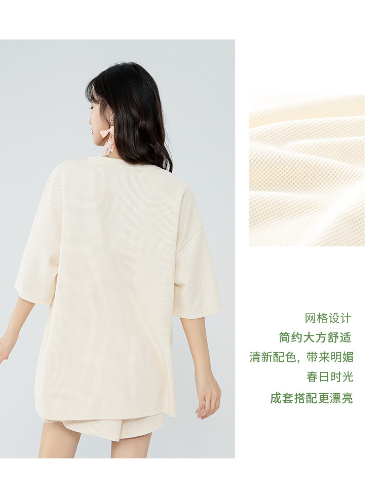 商品名称:【女装华夫格】中长款下衣失踪T恤女夏季宽松休闲运动慵懒风上衣 422931