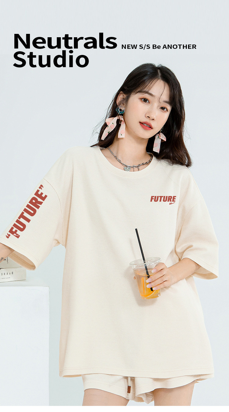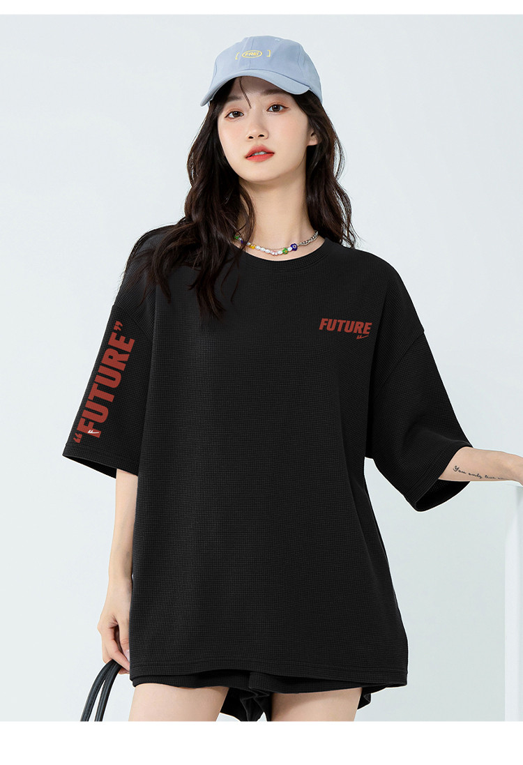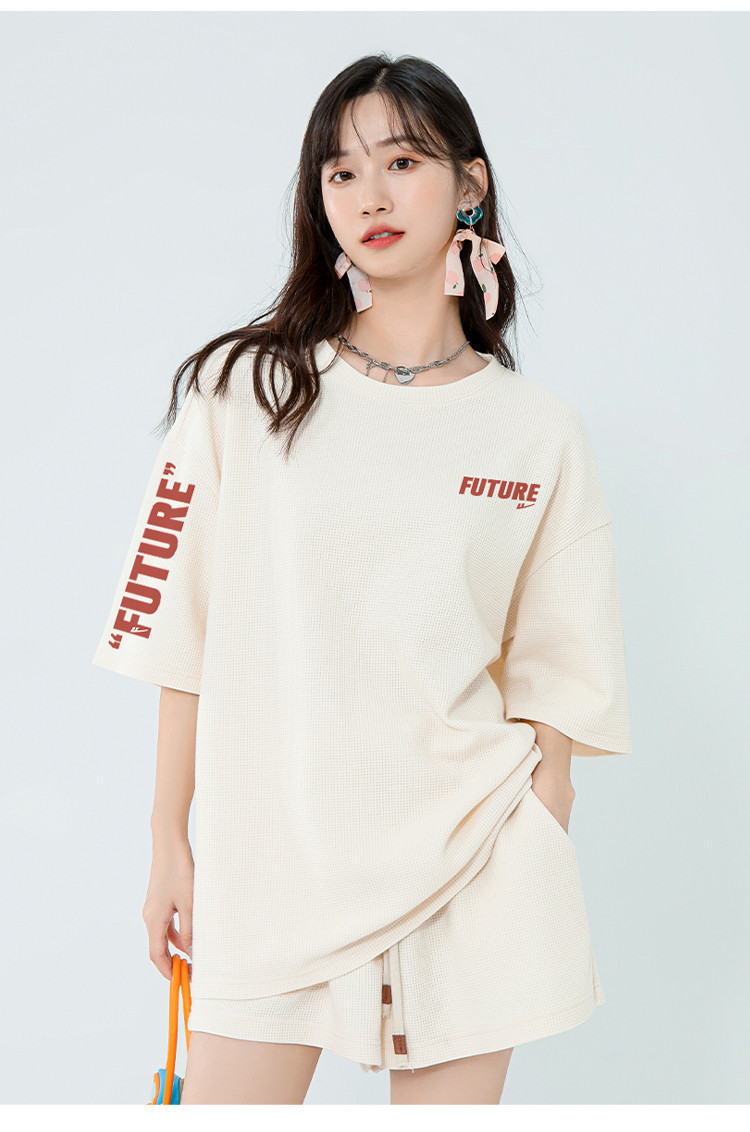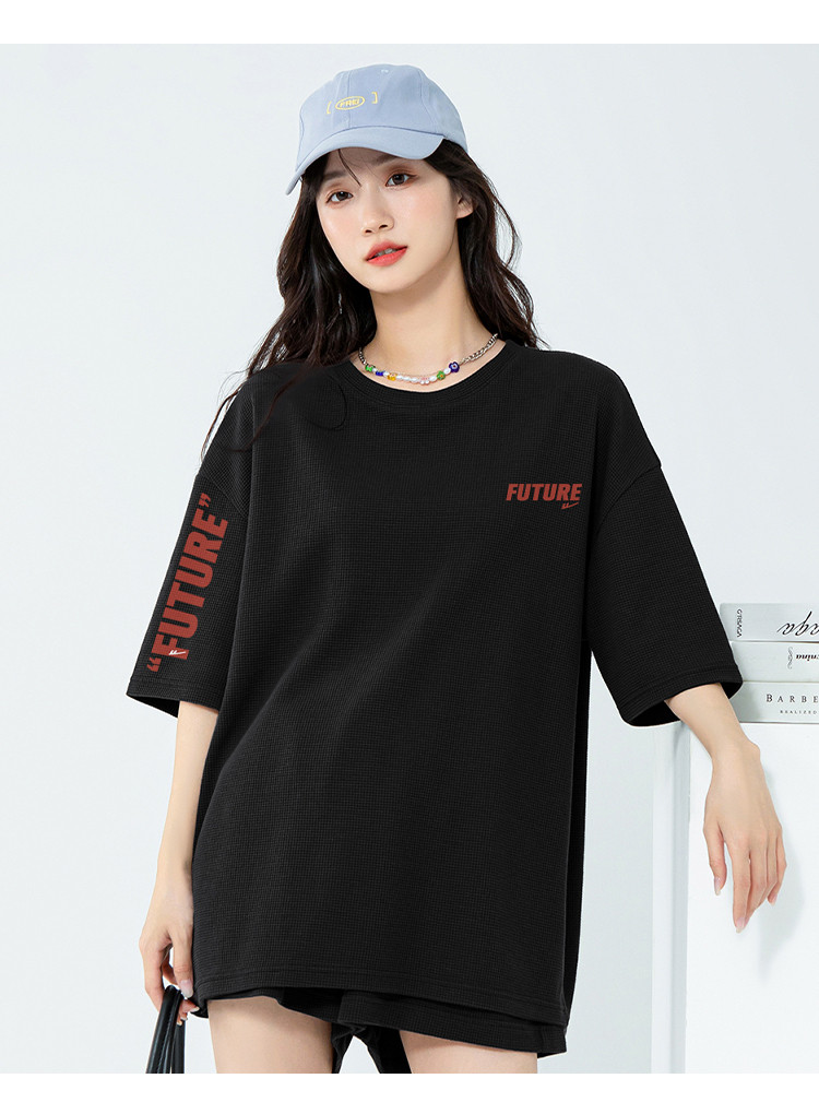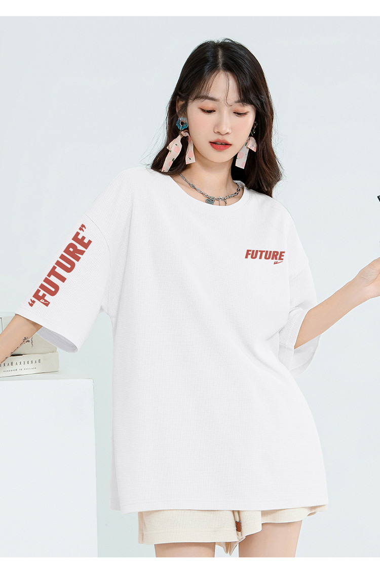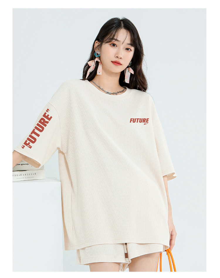 商品名称:【女装华夫格】中长款下衣失踪T恤女夏季宽松休闲运动慵懒风上衣 422931