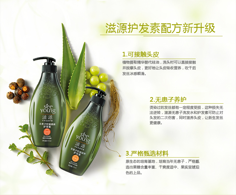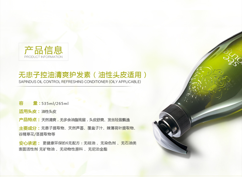 商品名称:滋源 无患子控油清爽护发素 535ml 适用油性头皮 无硅油 保湿控油