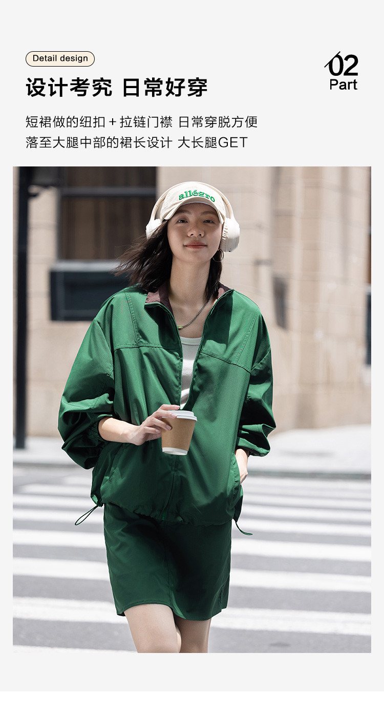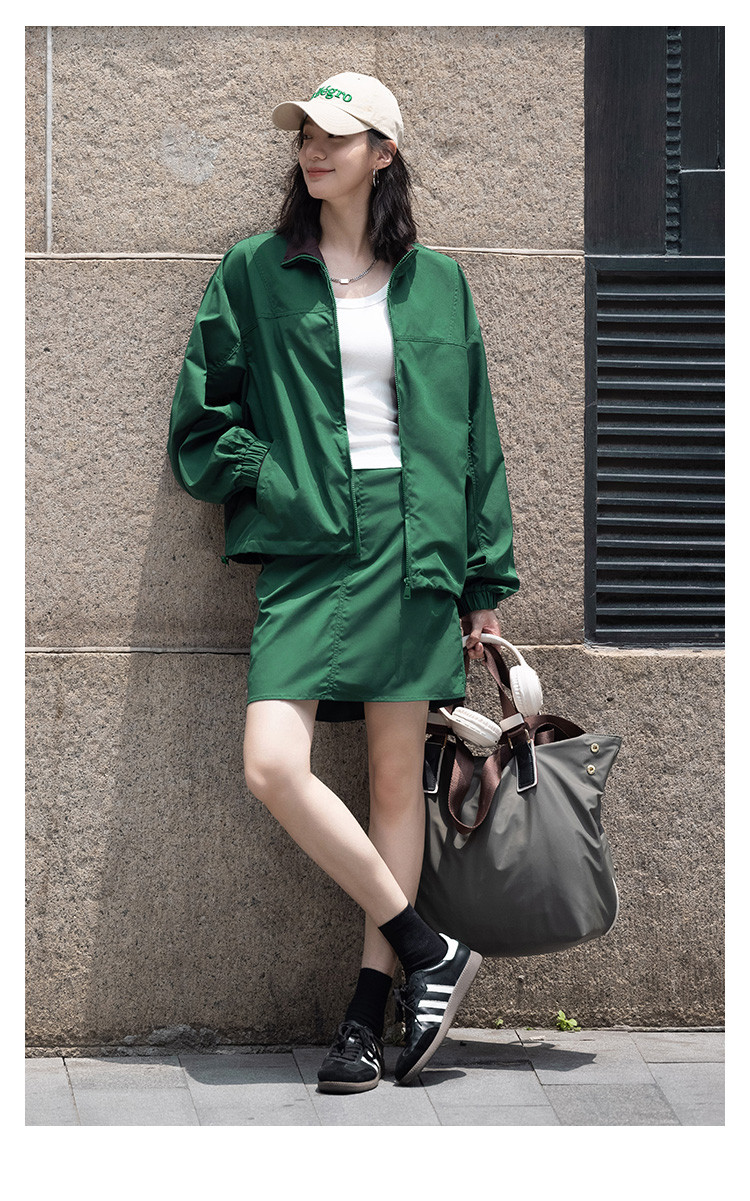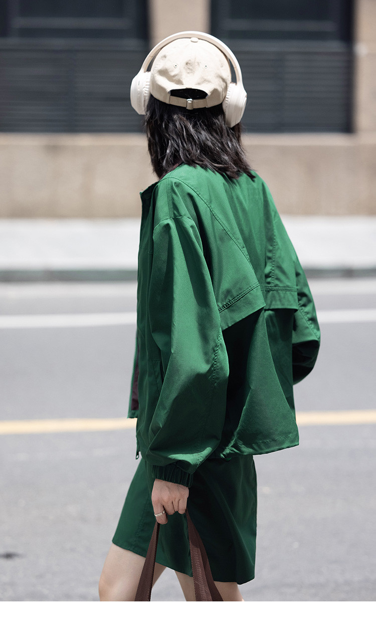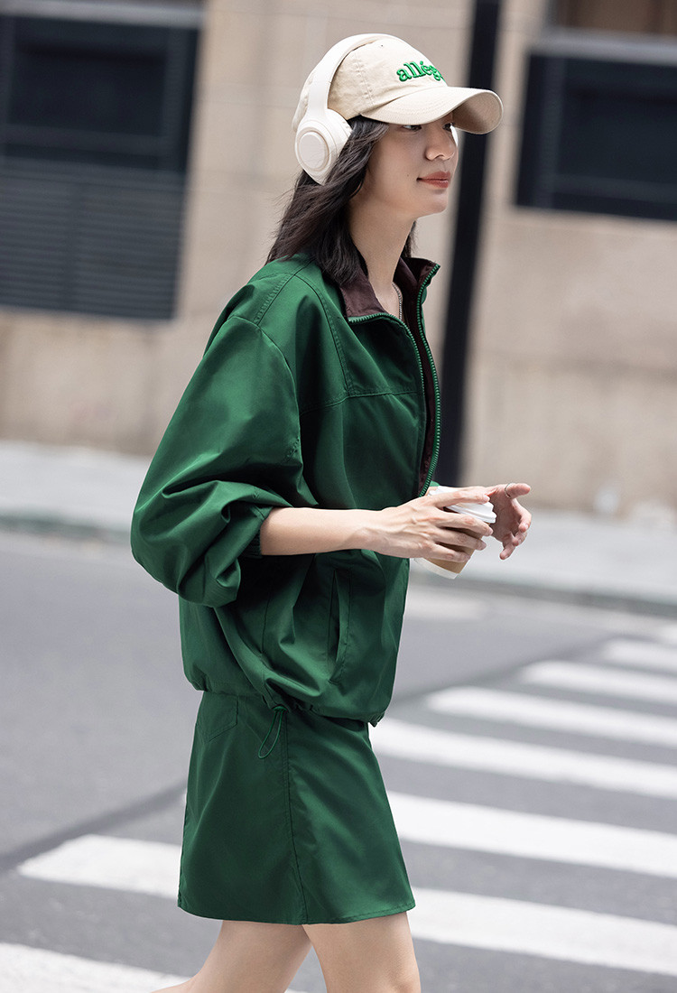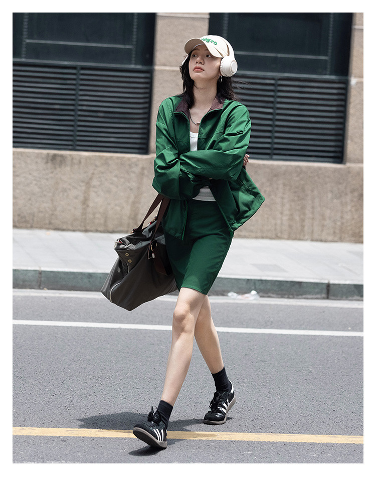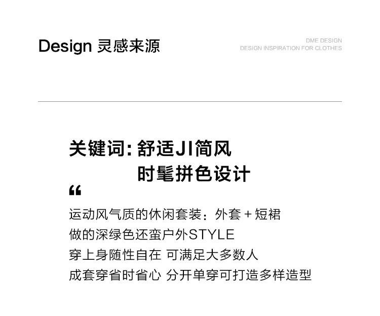 商品名称:【慵懒感深绿休闲套装】秋撞色分割设计短裙套装女 191554