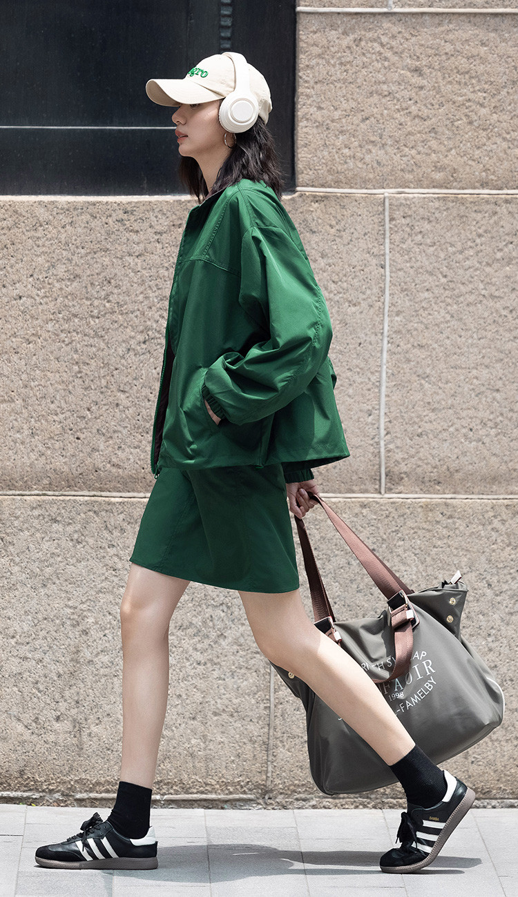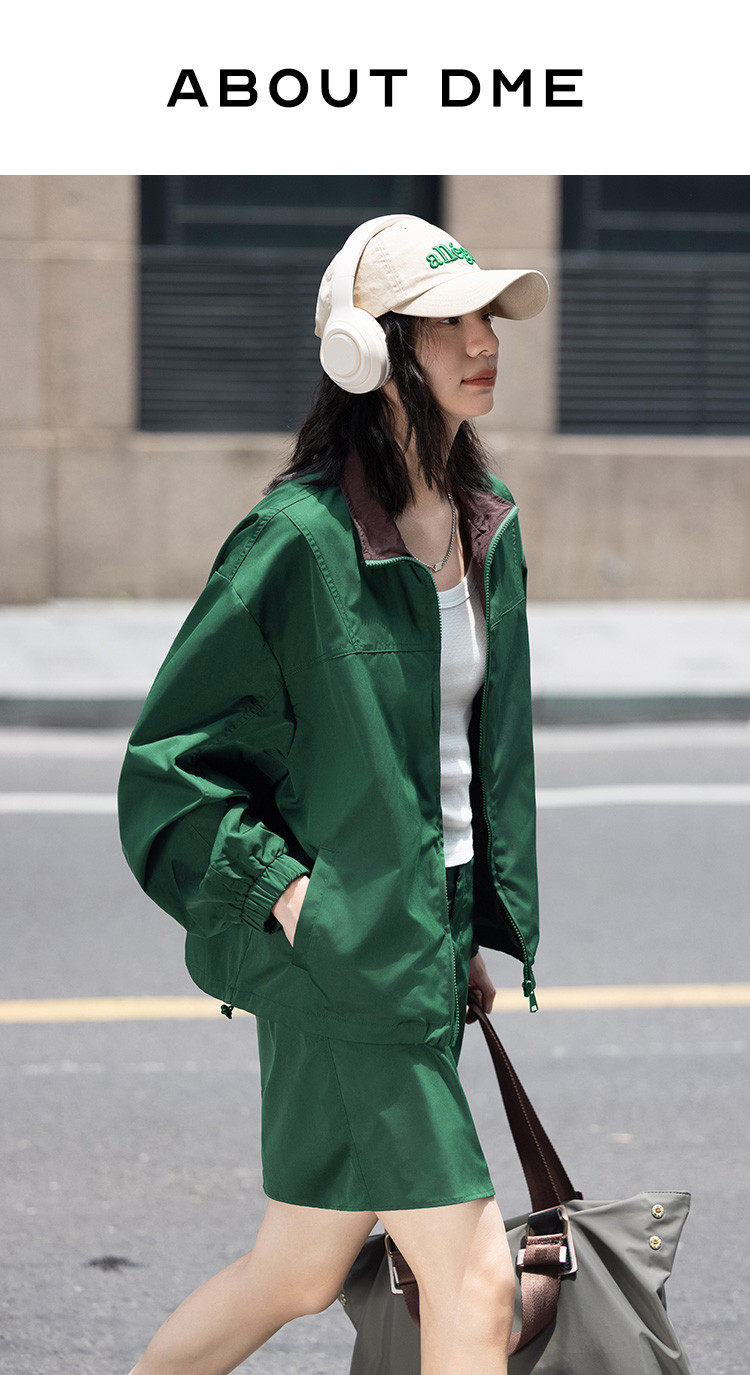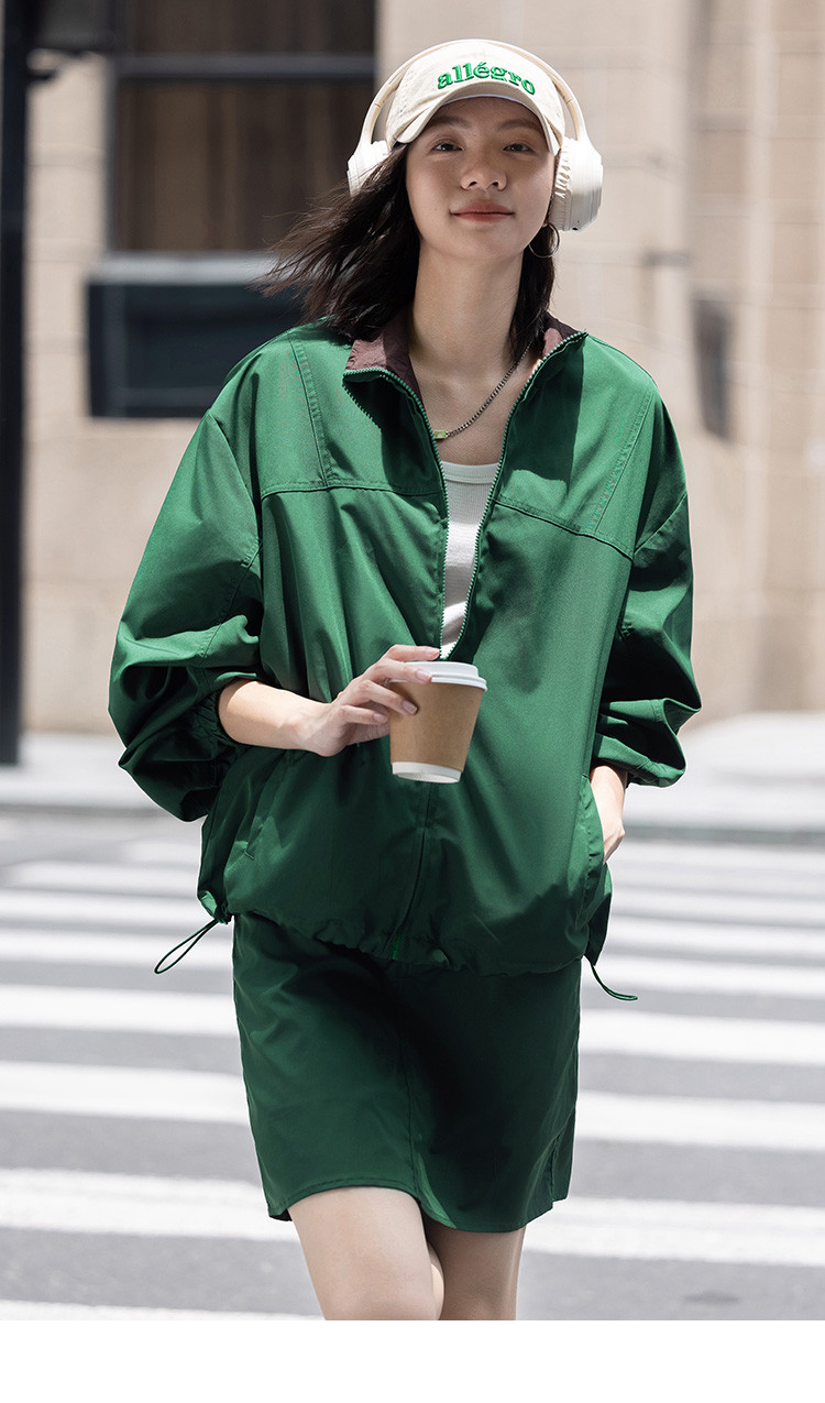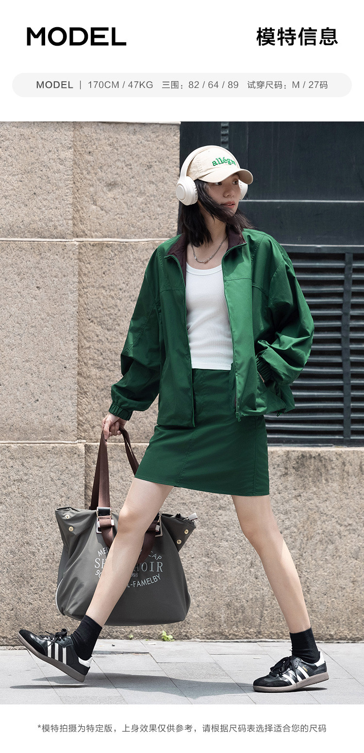 商品名称:【慵懒感深绿休闲套装】秋撞色分割设计短裙套装女 191554