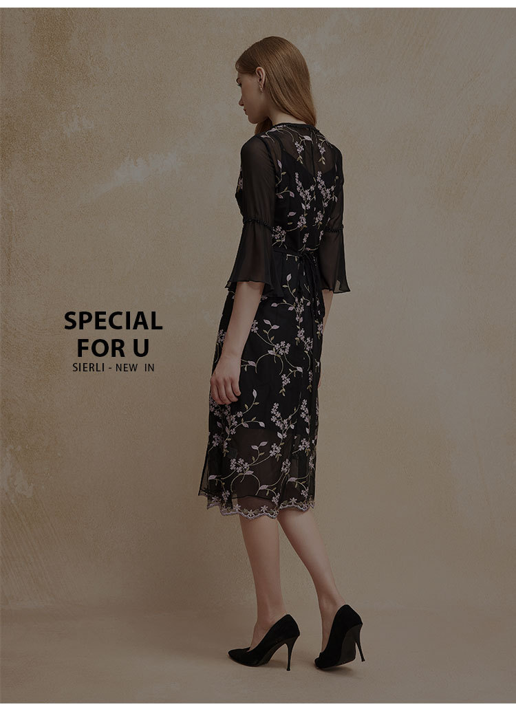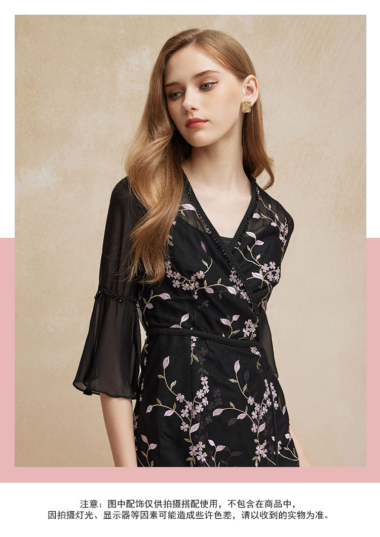 商品名称:交领围裹式风衣裙浪漫小碎花优雅淑女气质含内搭两件套连衣裙 814303