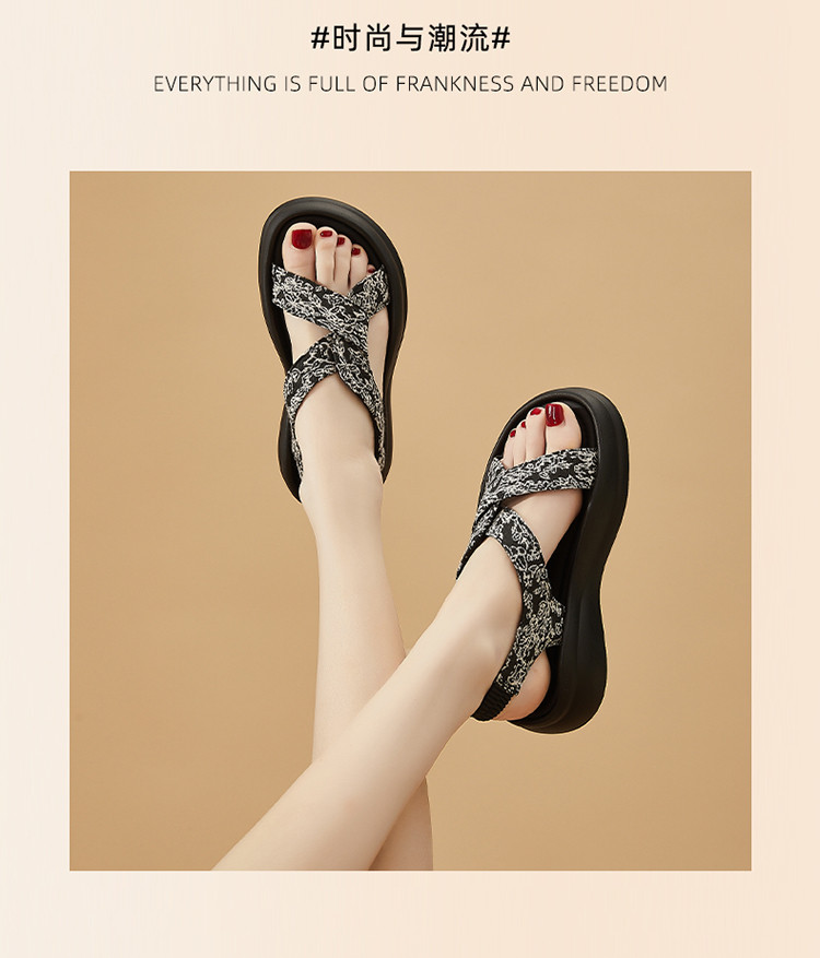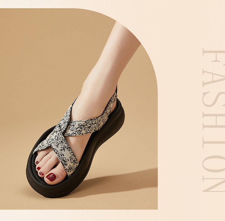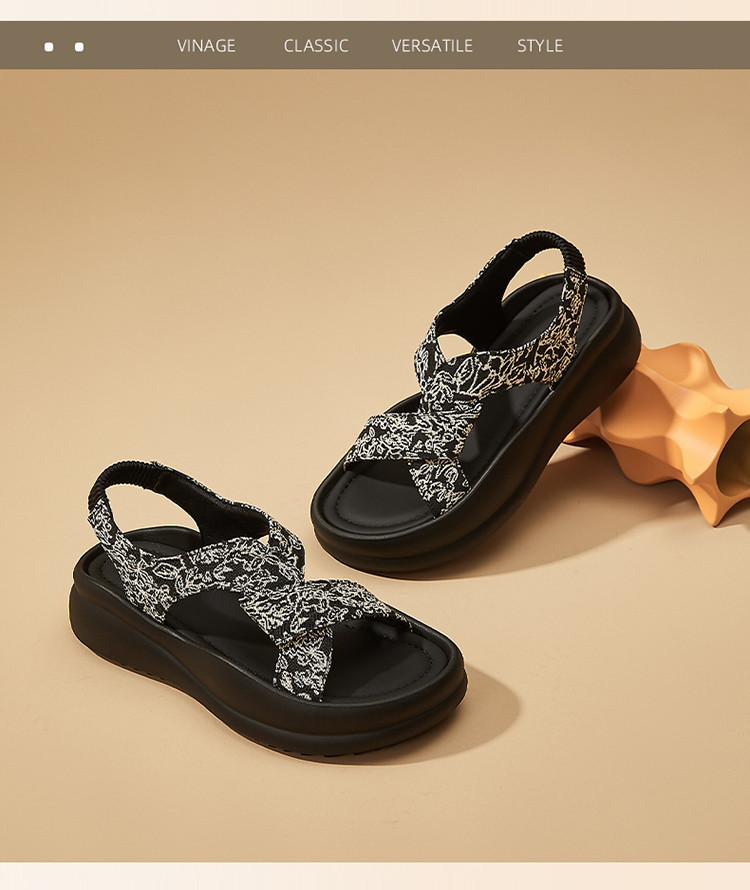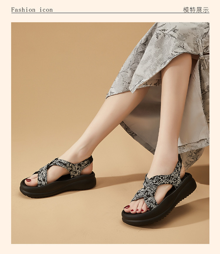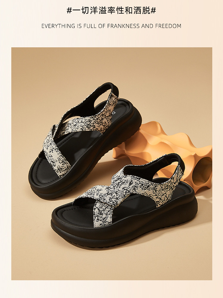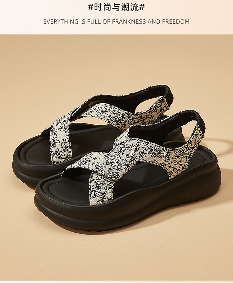 2025夏季复古风花纹国风松紧带设计厚底凉鞋时尚百搭潮流女鞋 271962