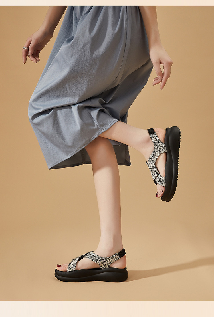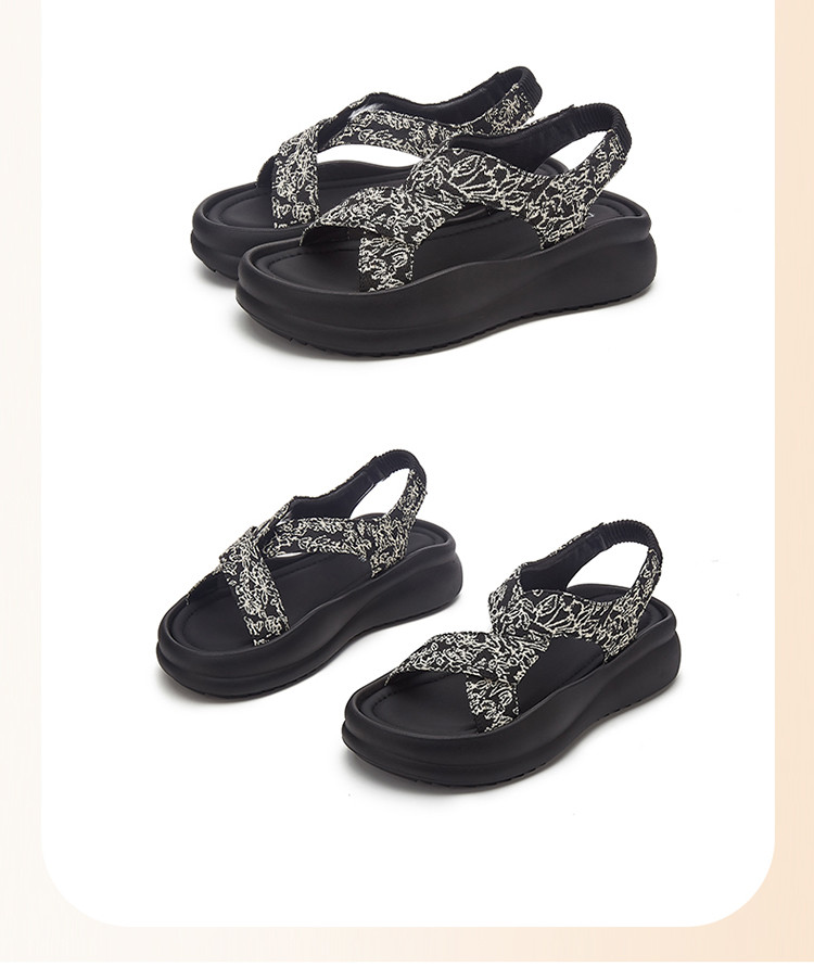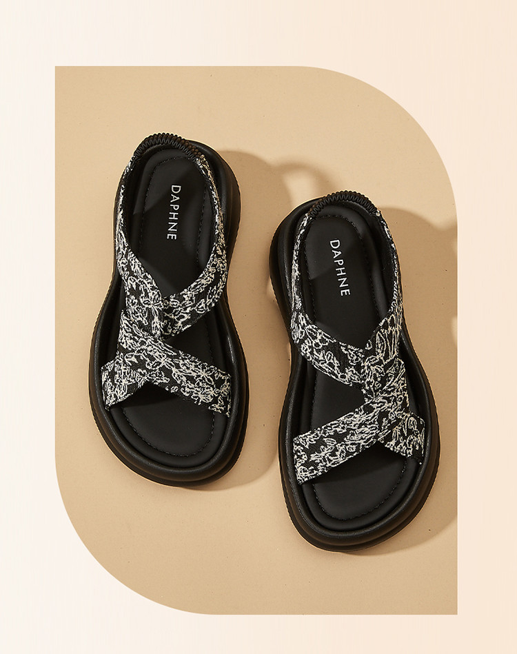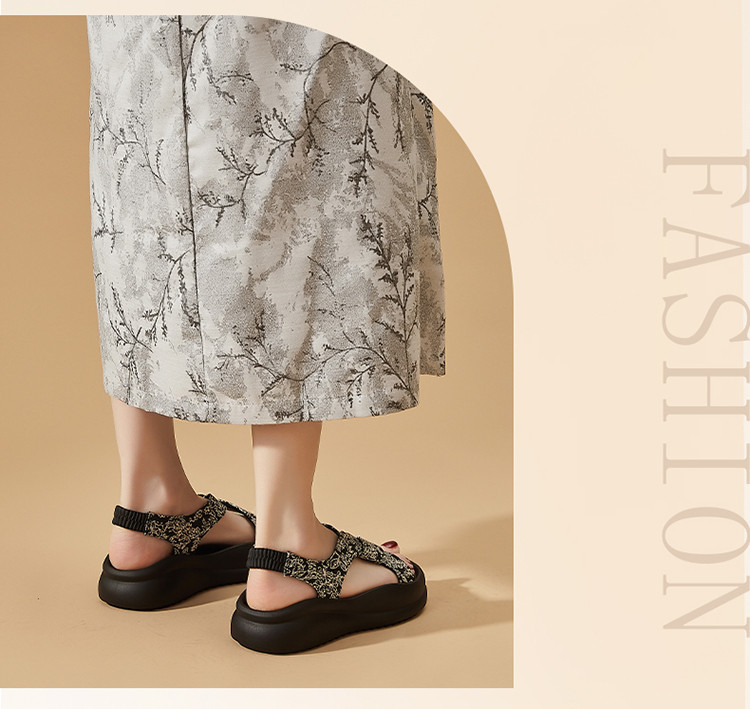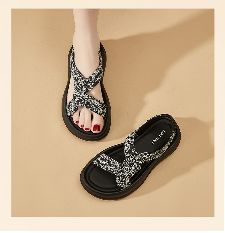 2025夏季复古风花纹国风松紧带设计厚底凉鞋时尚百搭潮流女鞋 271962