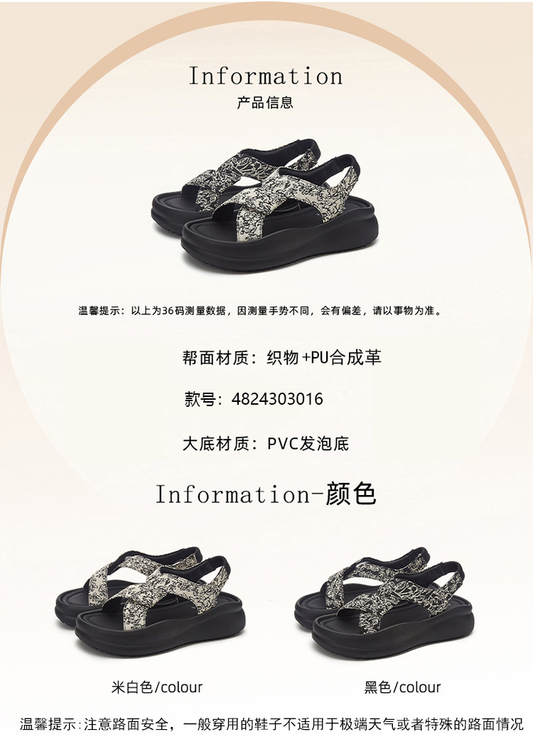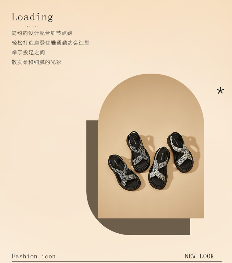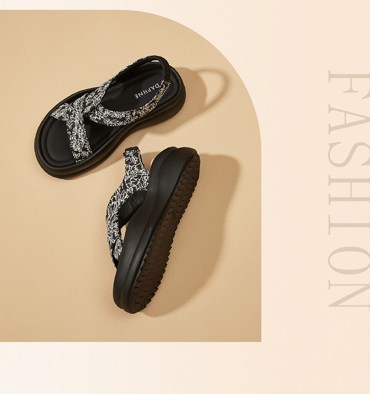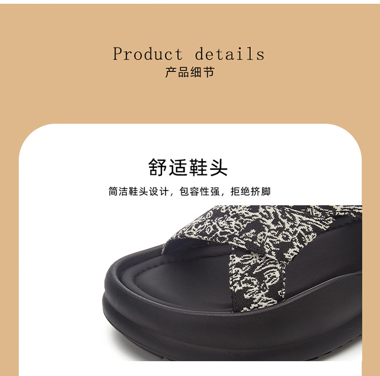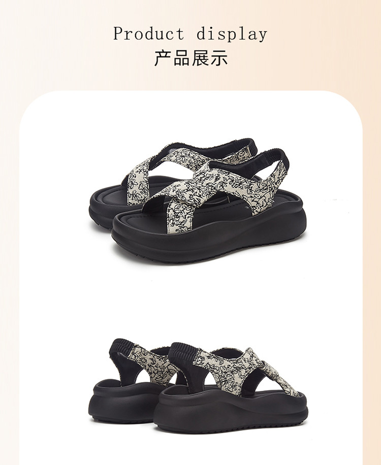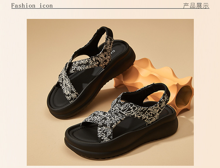 商品名称:2025夏季复古风花纹国风松紧带设计厚底凉鞋时尚百搭潮流女鞋 271962