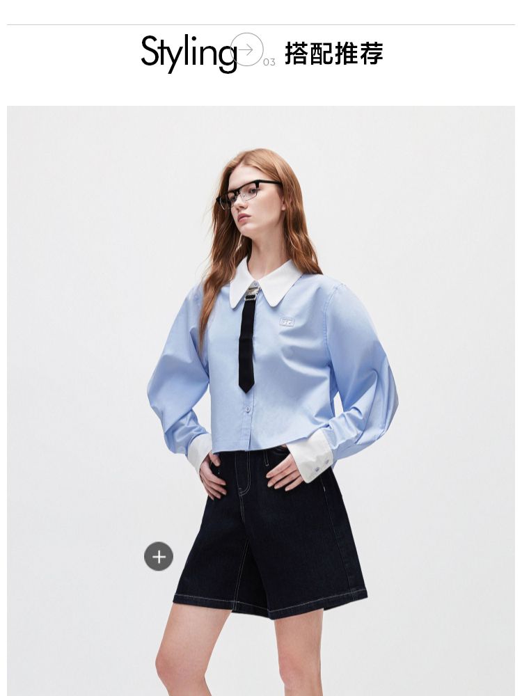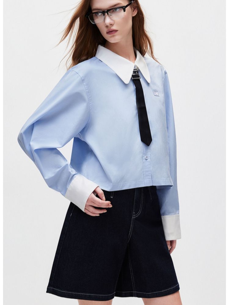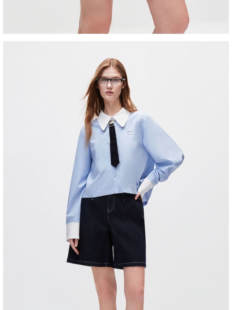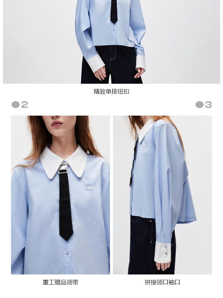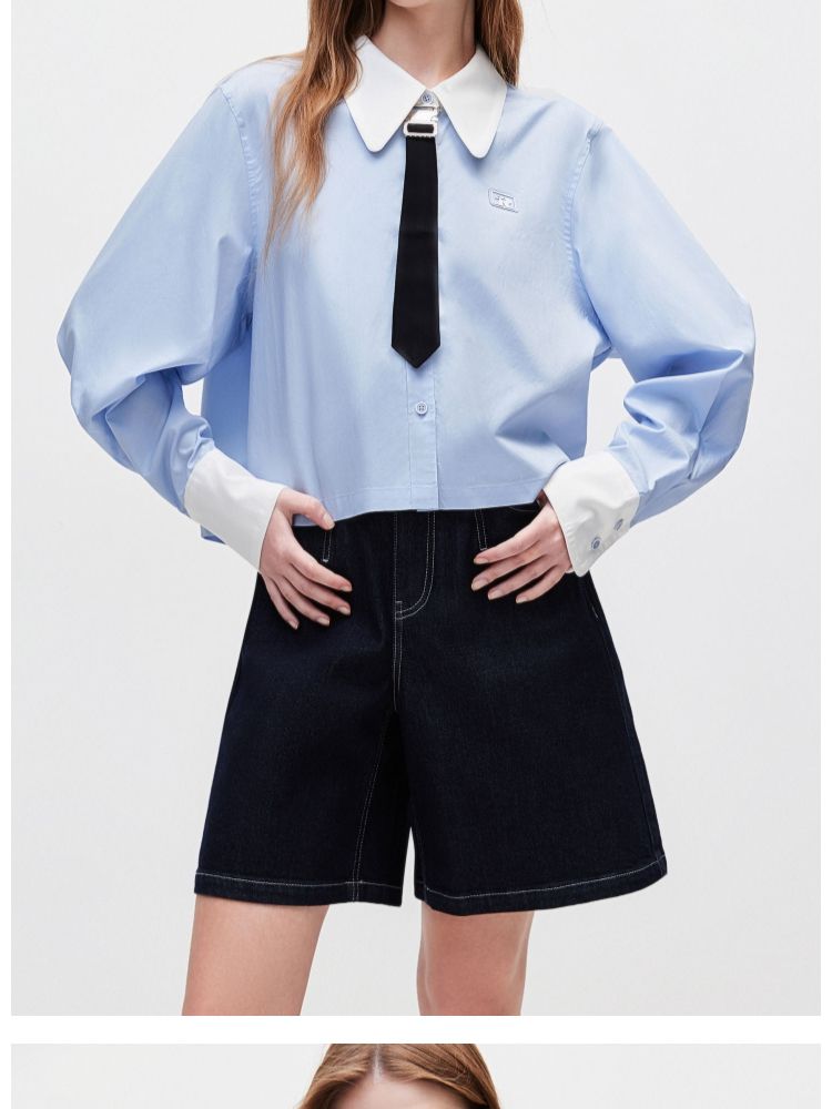 【学院风衬衫】夏季含莱赛尔拼接纽扣翻领长袖衬衫女 084634
