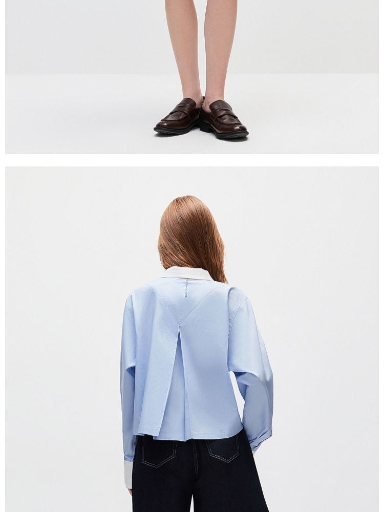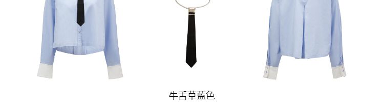 商品名称:【学院风衬衫】夏季含莱赛尔拼接纽扣翻领长袖衬衫女 084634