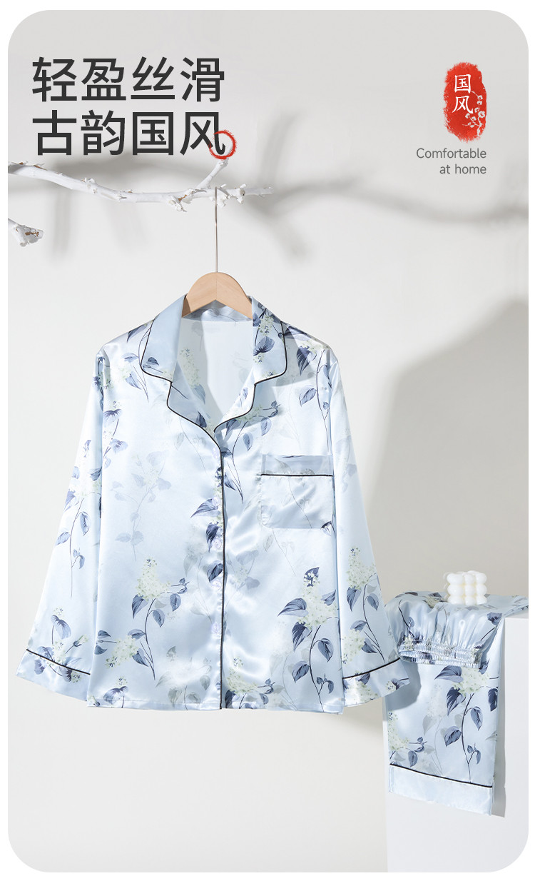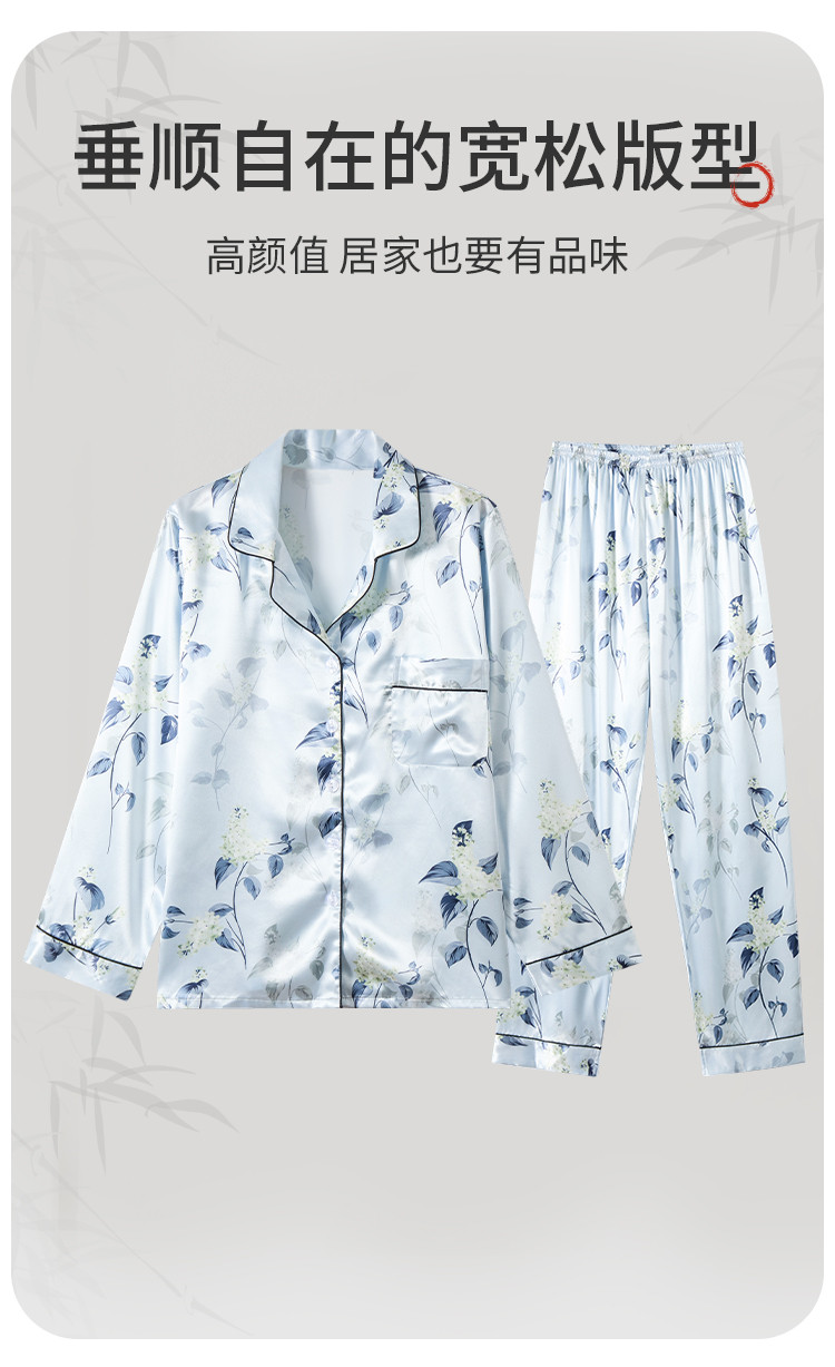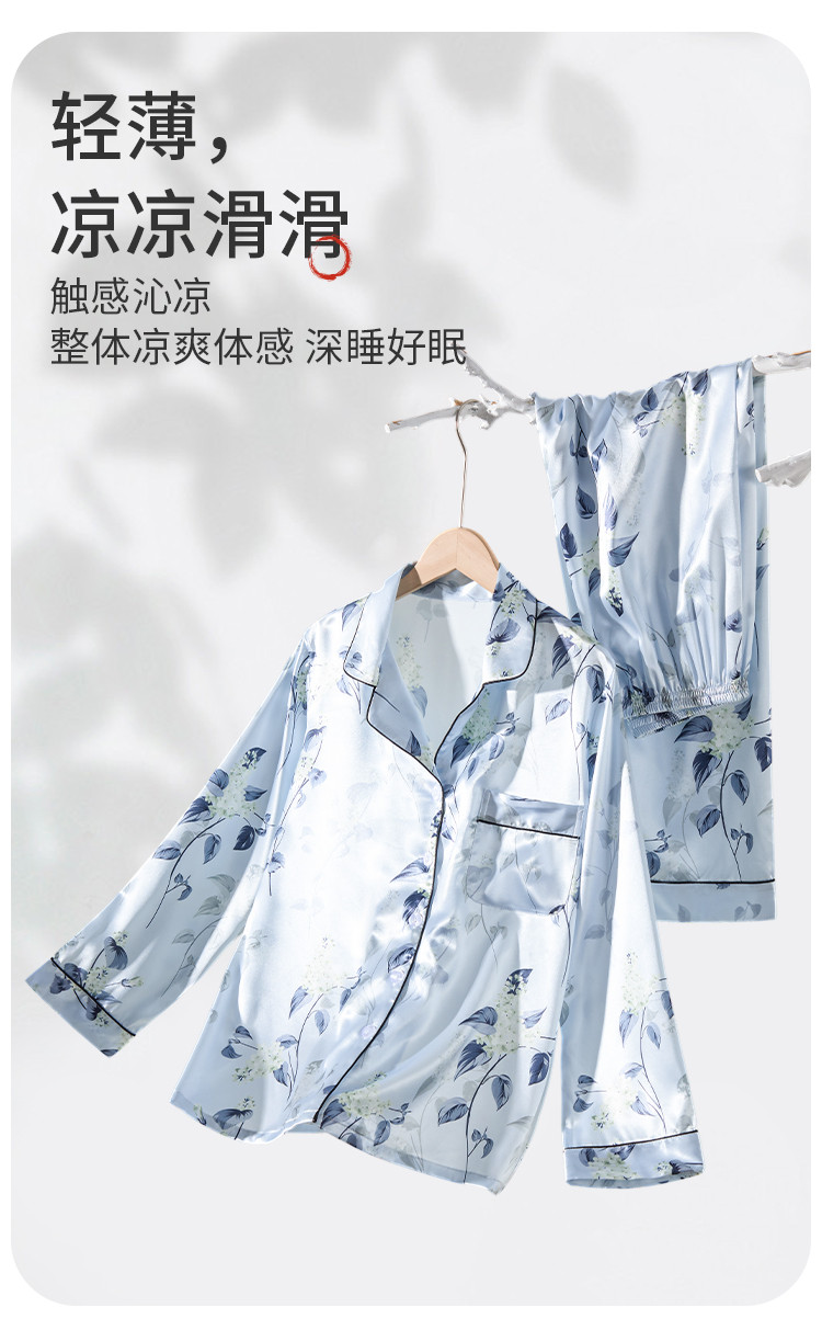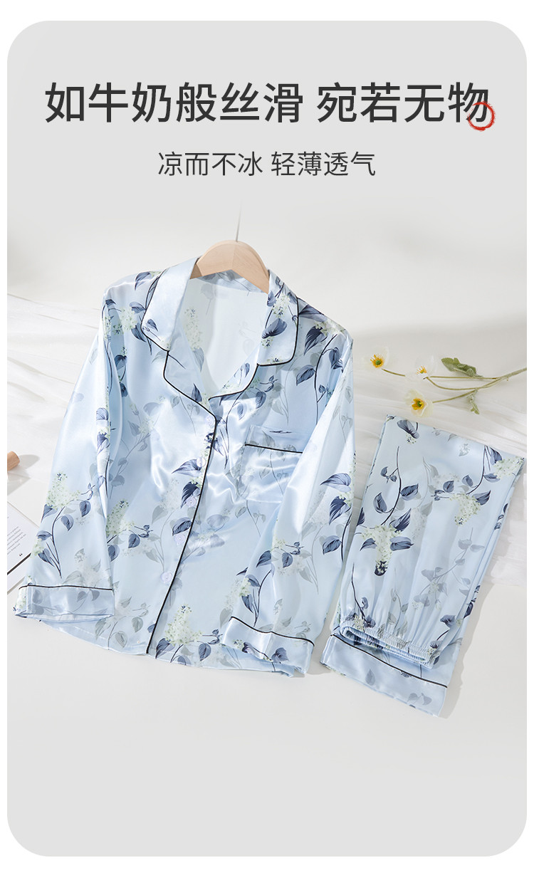 商品名称:【7A抑菌冰丝】女士冰丝睡衣春秋长袖可外穿家居服睡衣套装女 065995