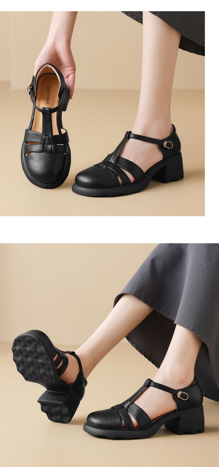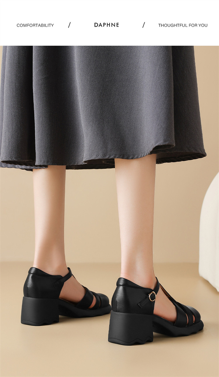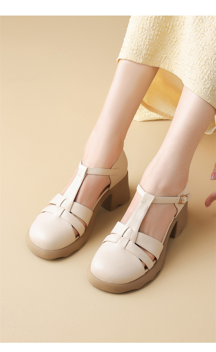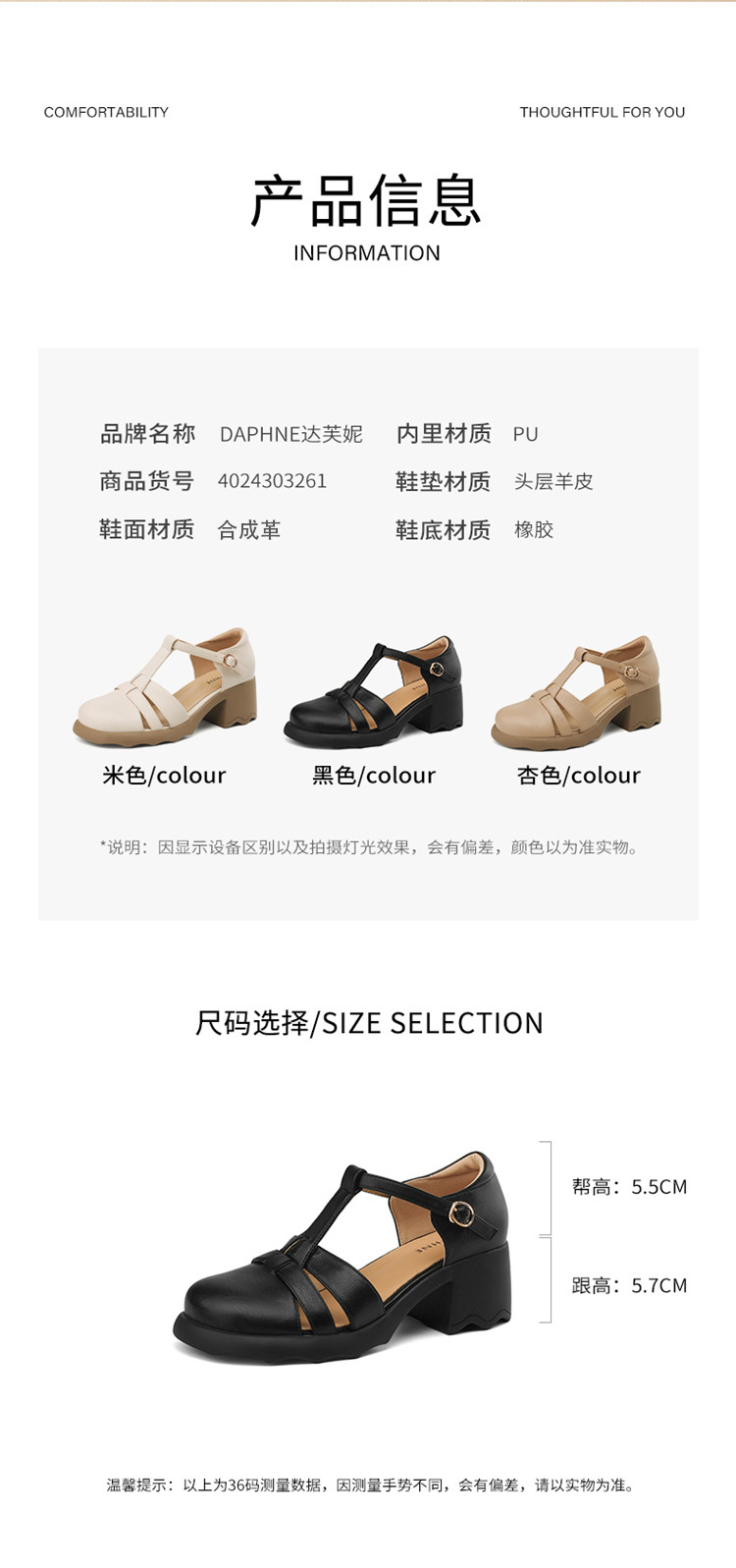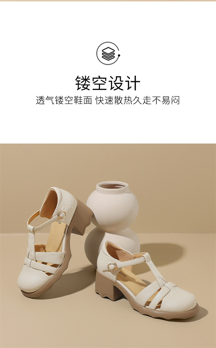 商品名称:罗马凉鞋女夏季粗跟增高中空凉鞋女包头单鞋猪笼鞋透气舒适通勤鞋 103703
