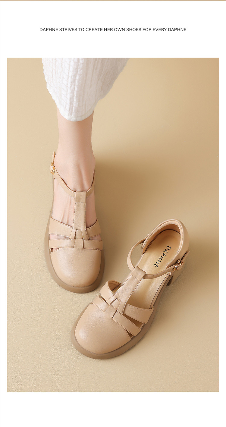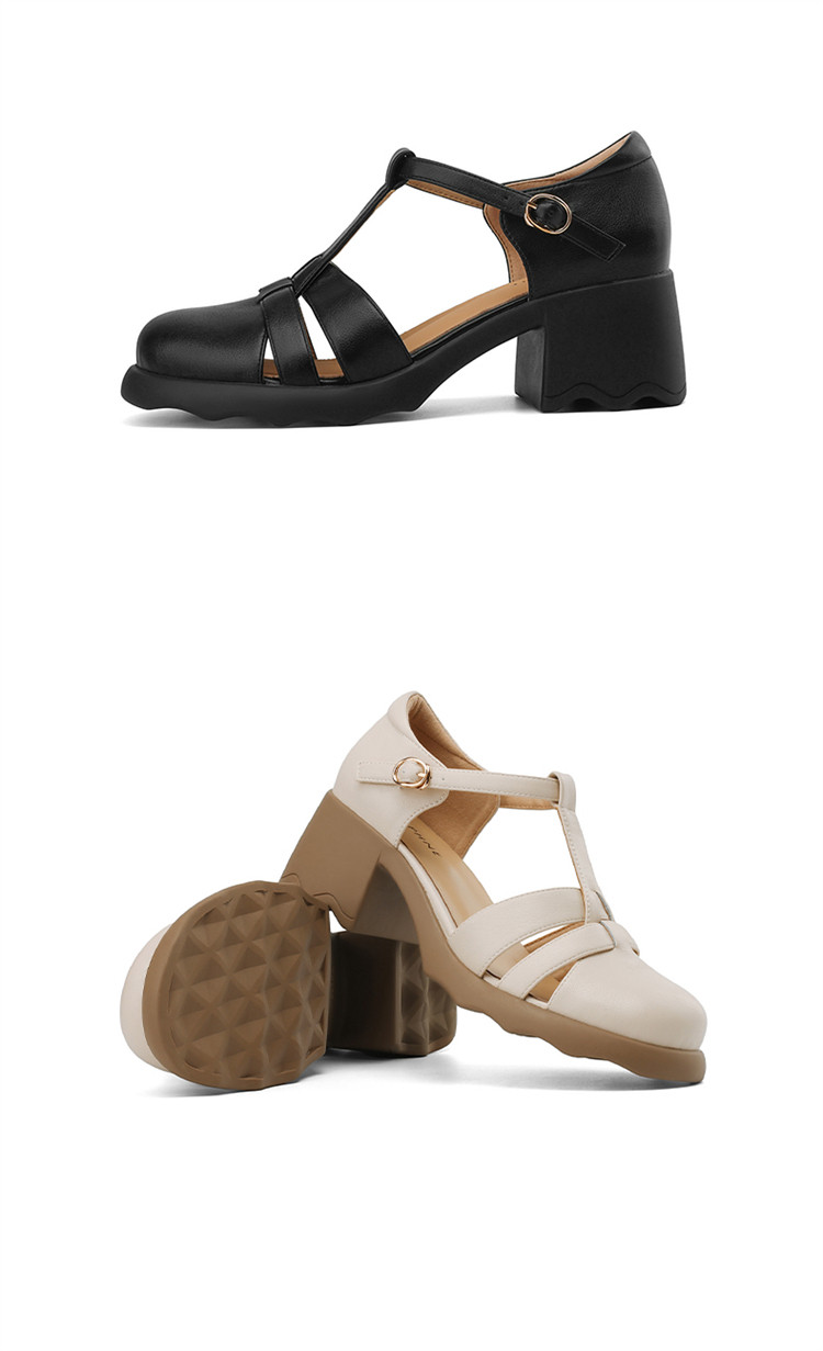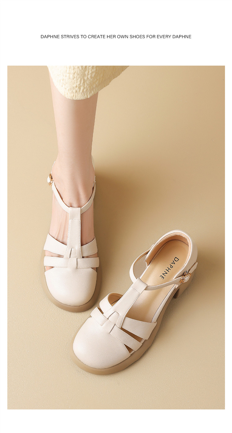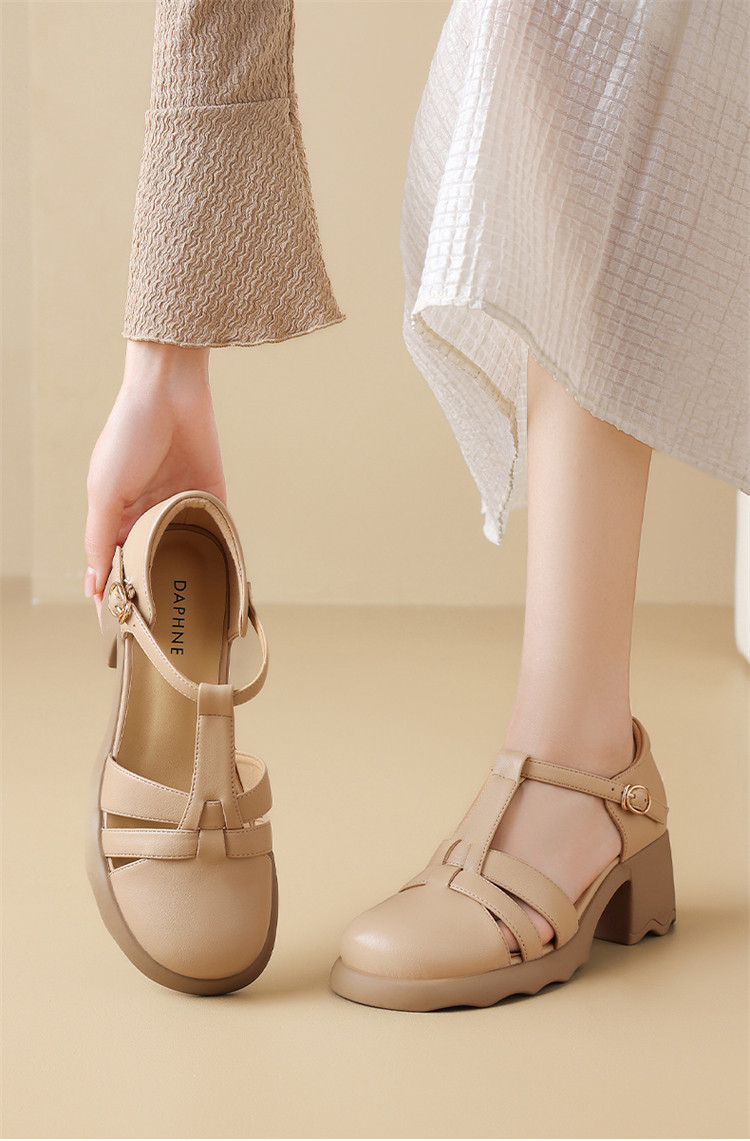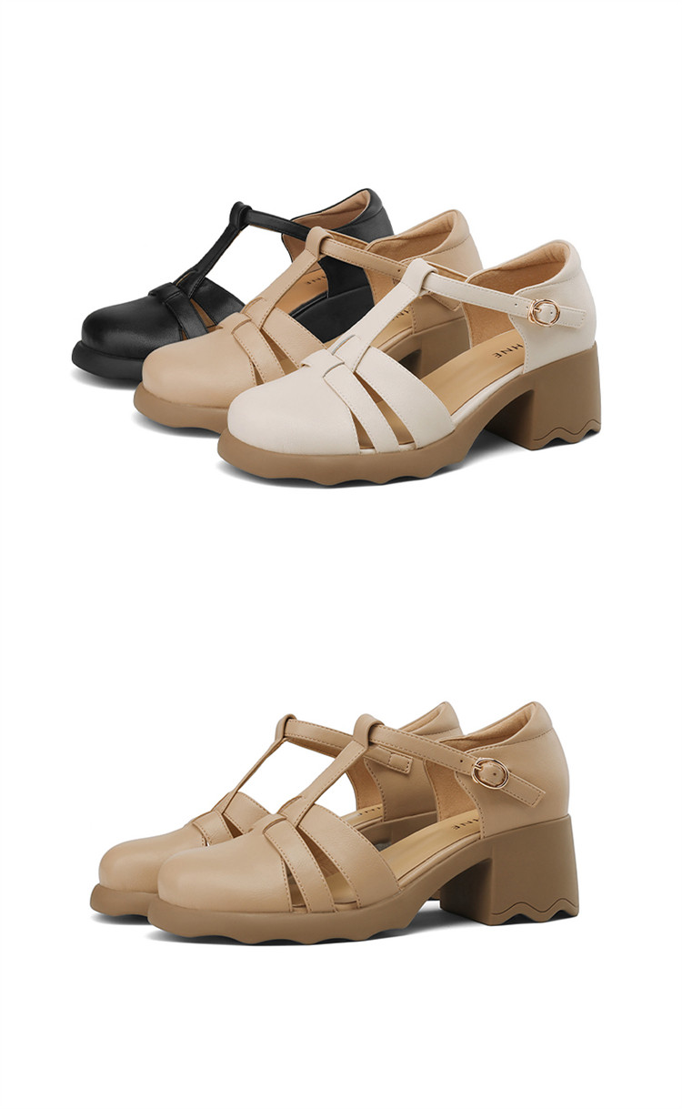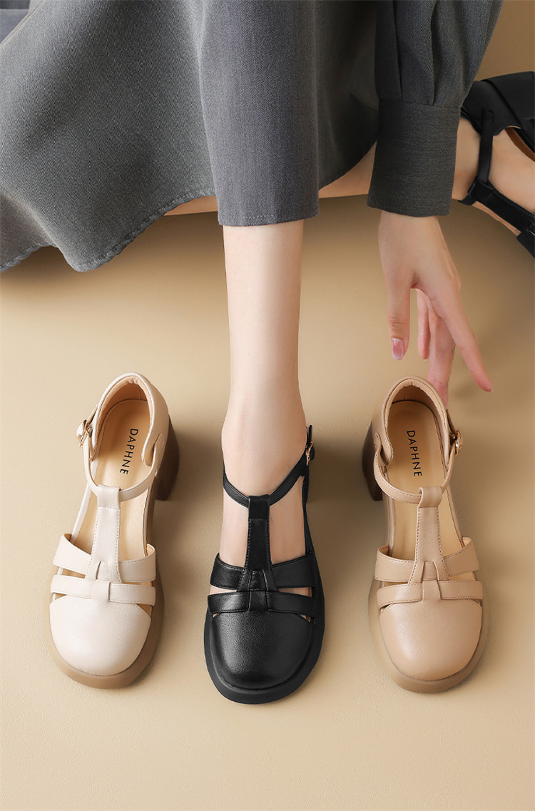 商品名称:罗马凉鞋女夏季粗跟增高中空凉鞋女包头单鞋猪笼鞋透气舒适通勤鞋 103703