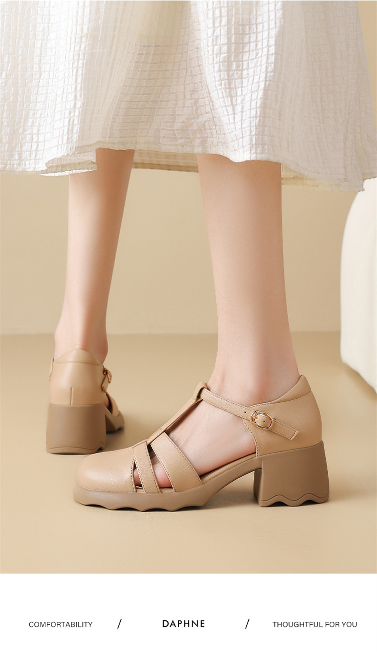 罗马凉鞋女夏季粗跟增高中空凉鞋女包头单鞋猪笼鞋透气舒适通勤鞋 103703