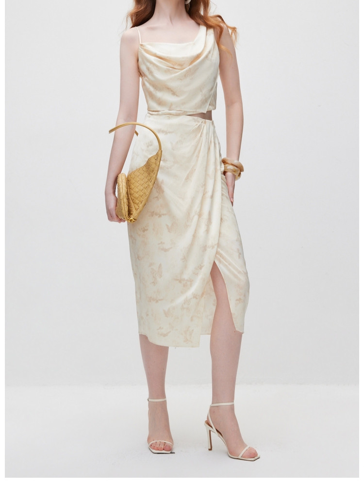【不对称套装】 夏季优雅不对称吊带长裙套装连衣裙女 069850