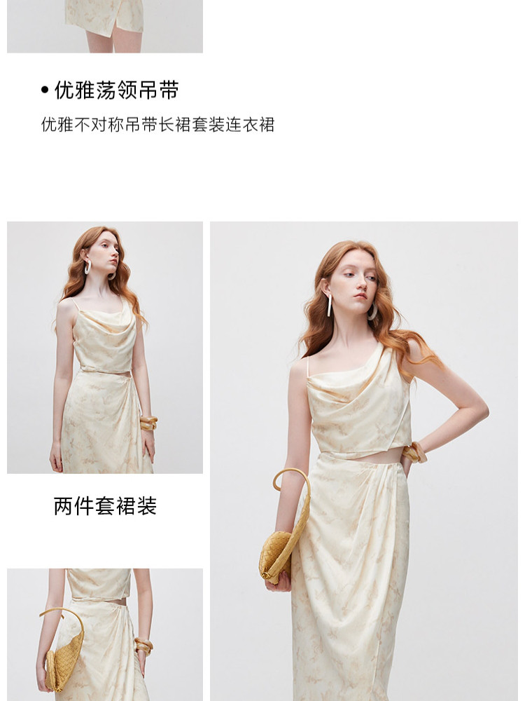 商品名称:【不对称套装】 夏季优雅不对称吊带长裙套装连衣裙女 069850