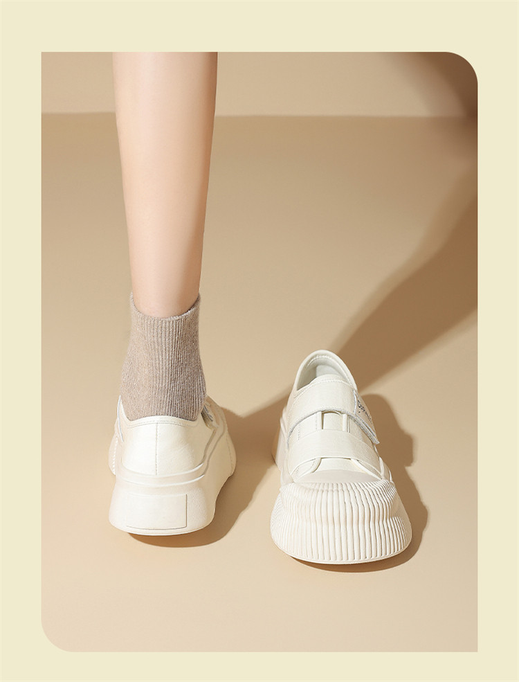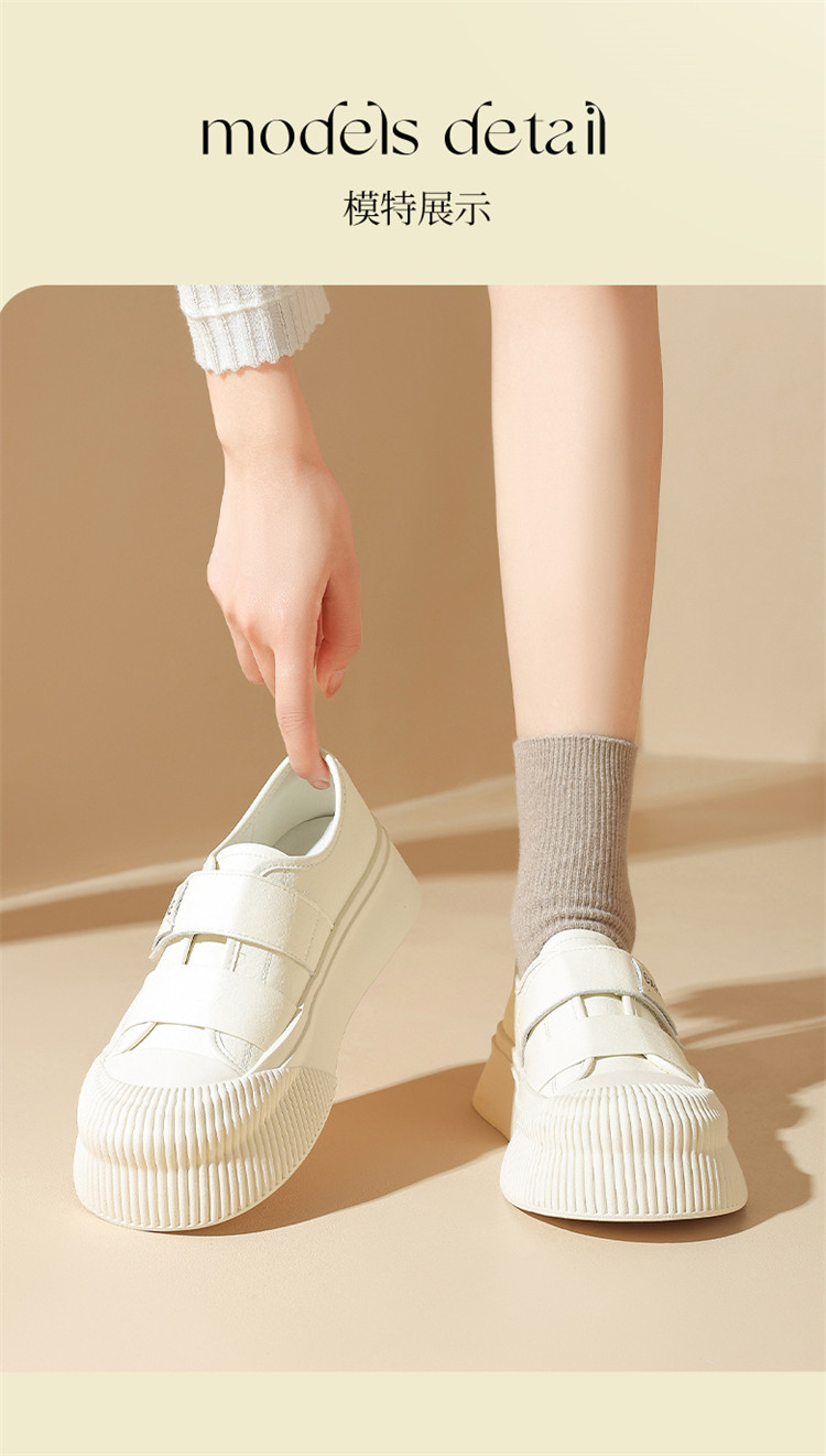 春季复古百搭时尚饼干鞋厚底增高休闲运动板鞋魔术贴小白鞋女鞋 730394