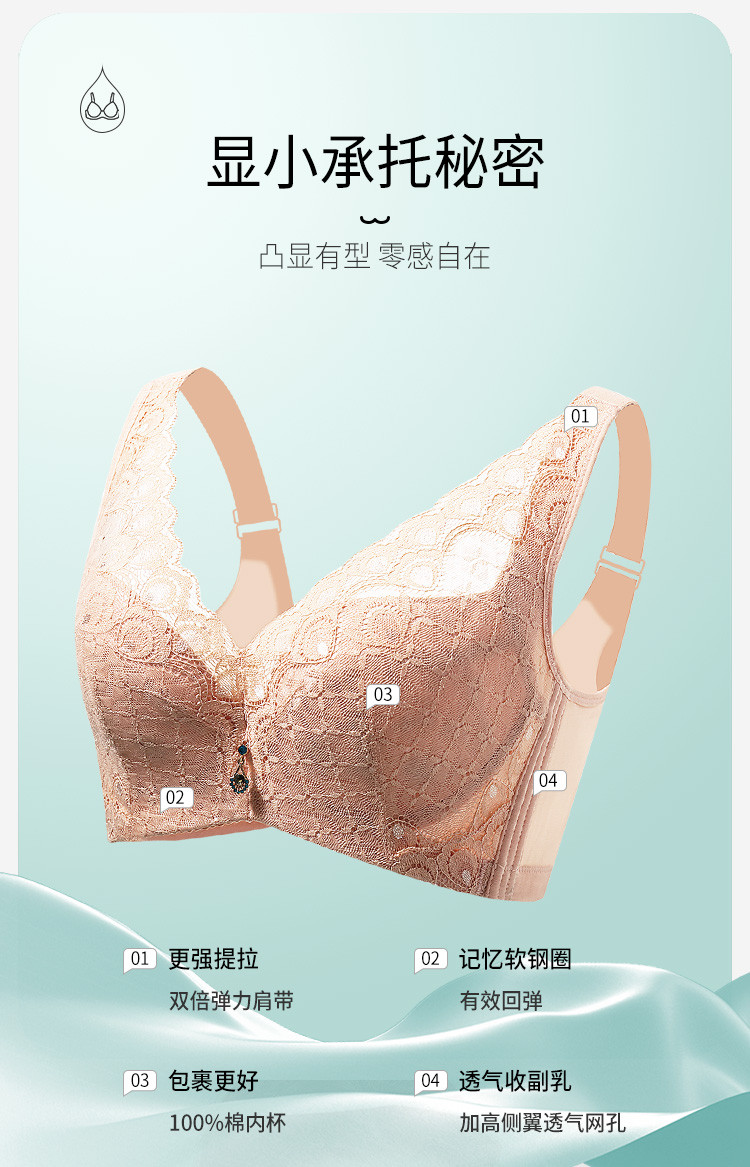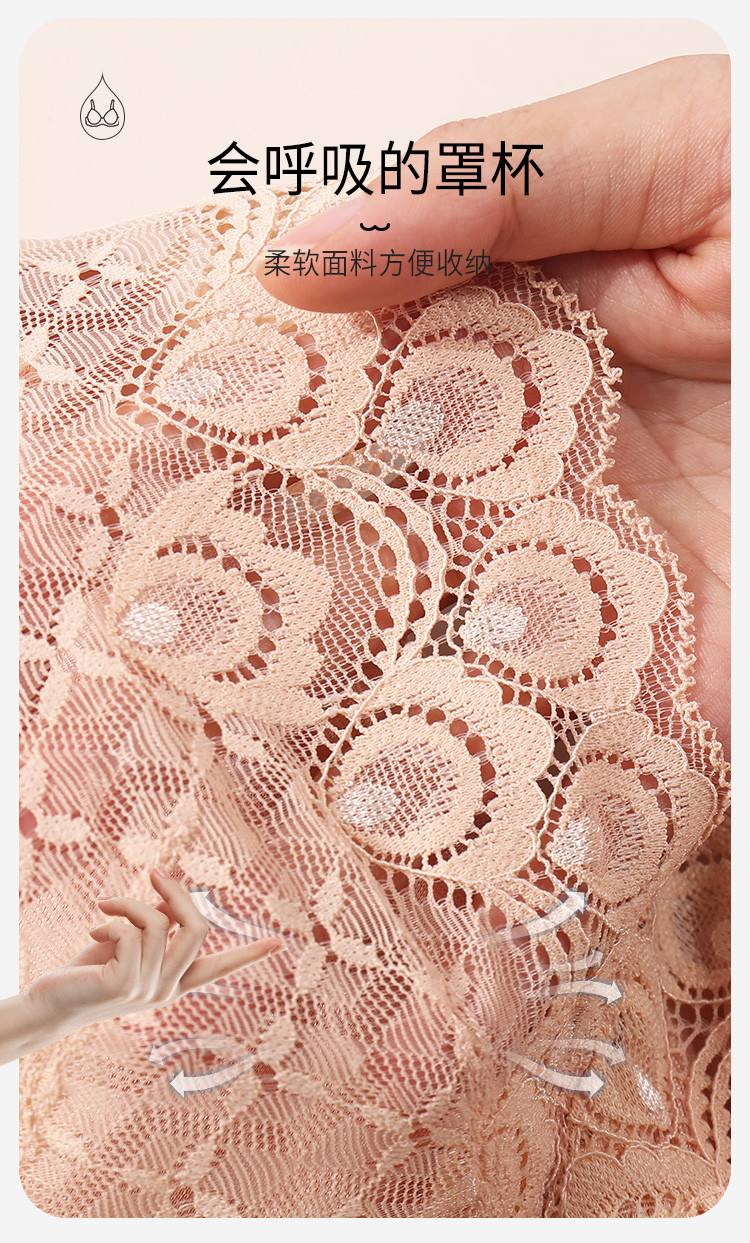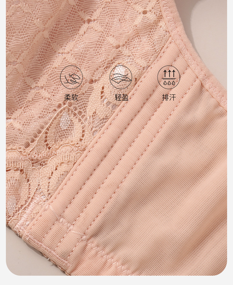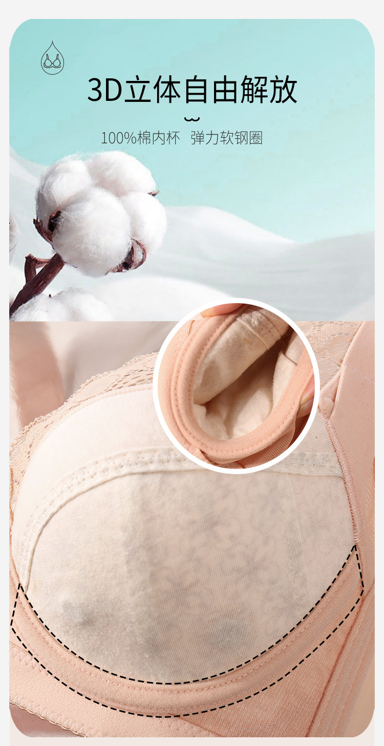 商品名称:【100%纯棉里】大胸显小聚拢上托不空杯蕾丝性感美背文胸罩 619678