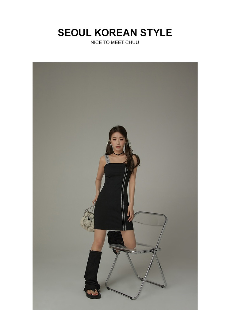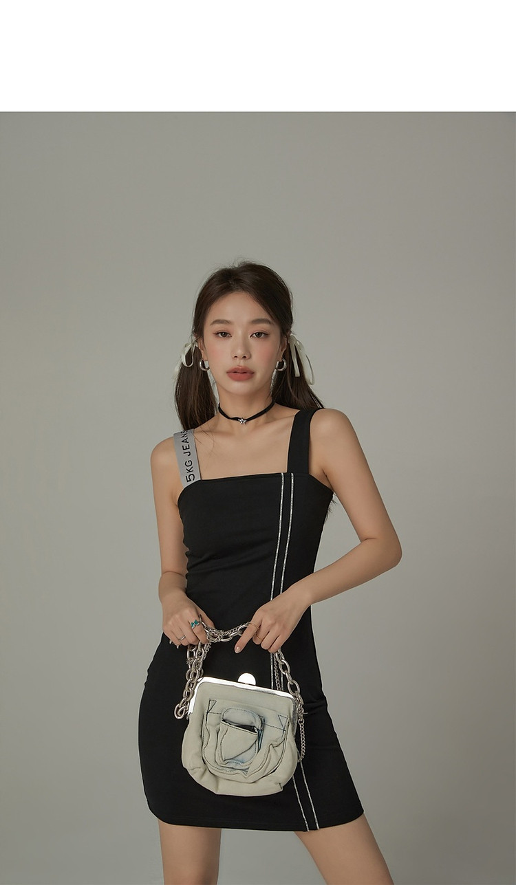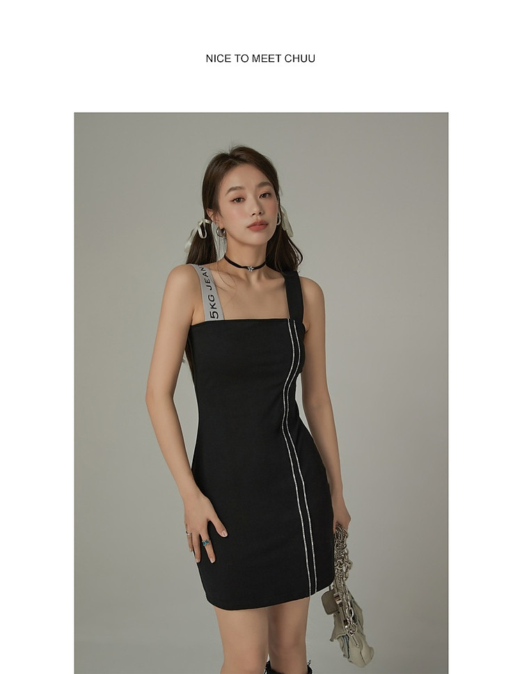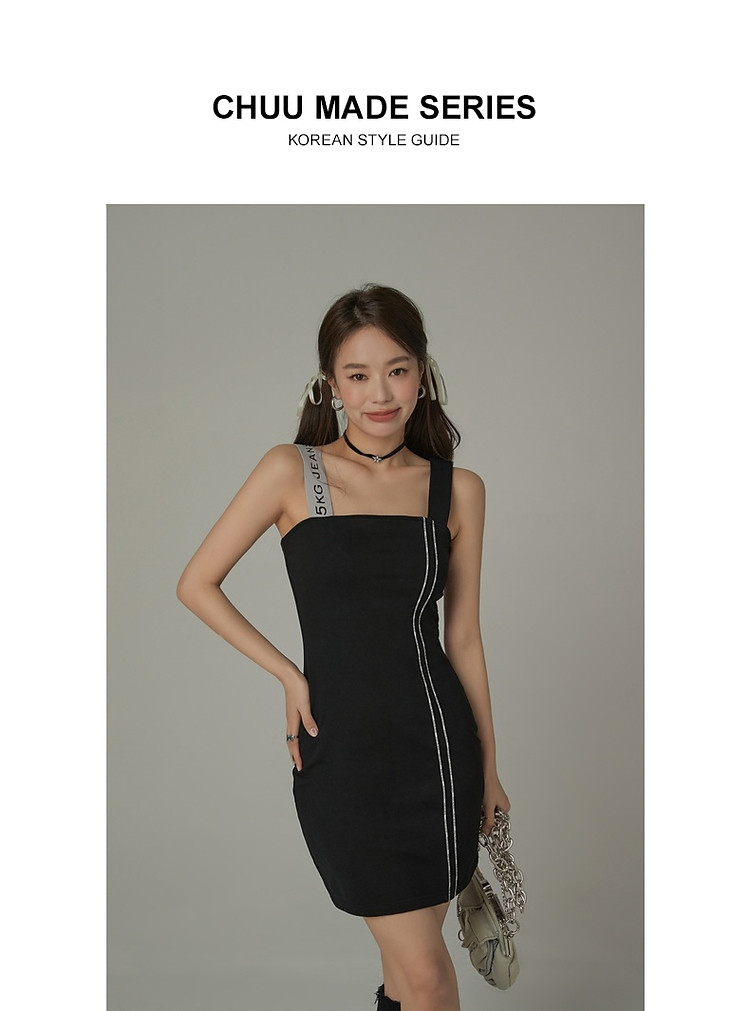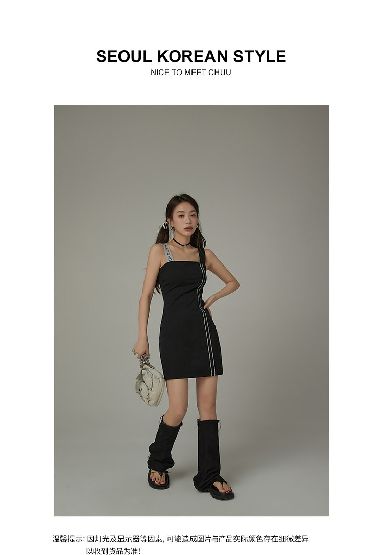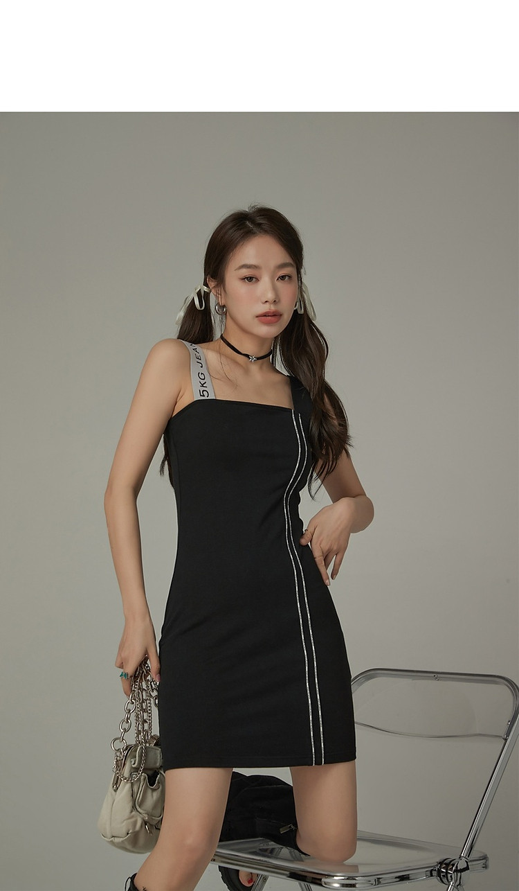 商品名称:辣妹修身连衣裙女夏字母肩带背心裙包臀短裙 048211