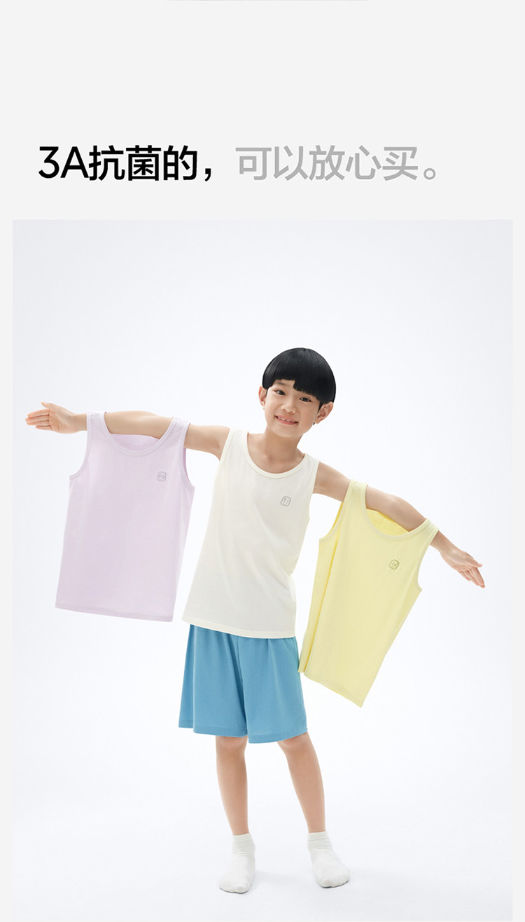 商品名称:300E儿童背心无侧缝一体抗菌100%纯棉柔软舒适男女童打底 572933