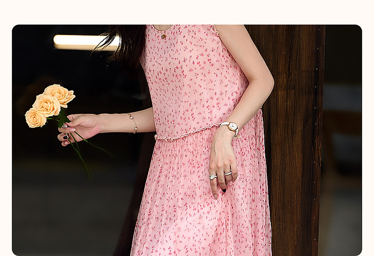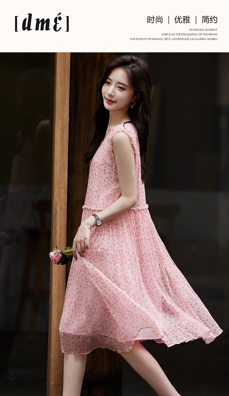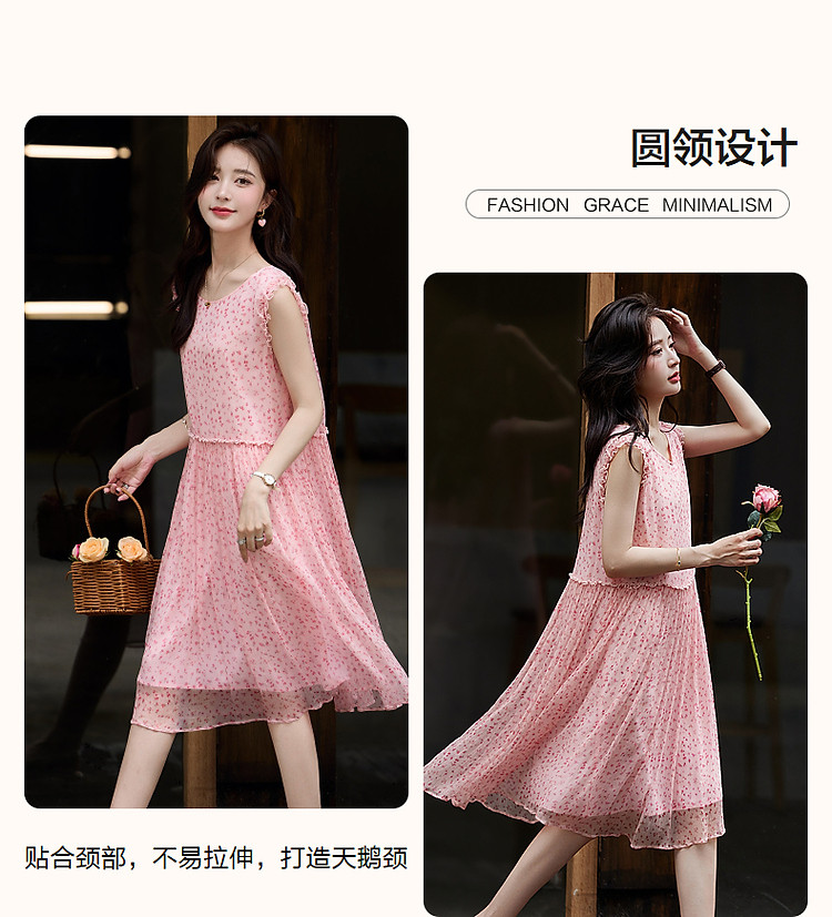 商品名称:【御姐教科书】夏呼吸感桑蚕丝真丝抽褶无袖A字连衣裙女 880449