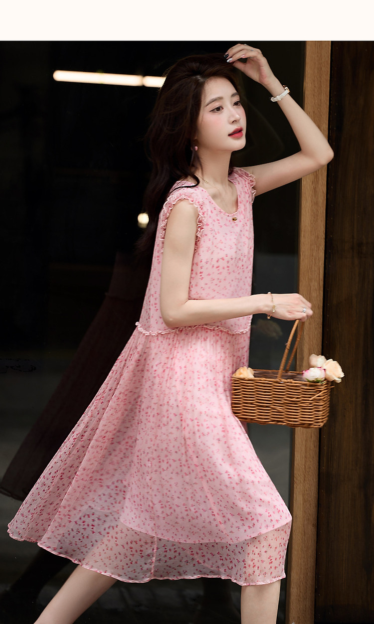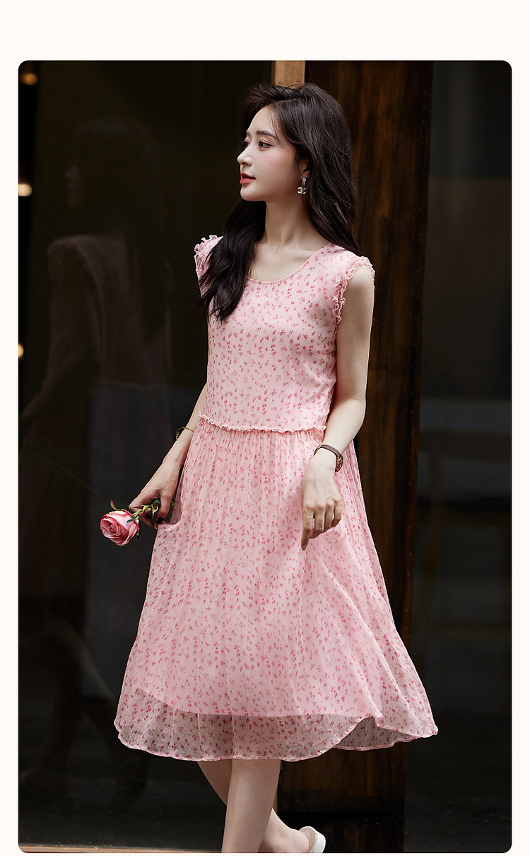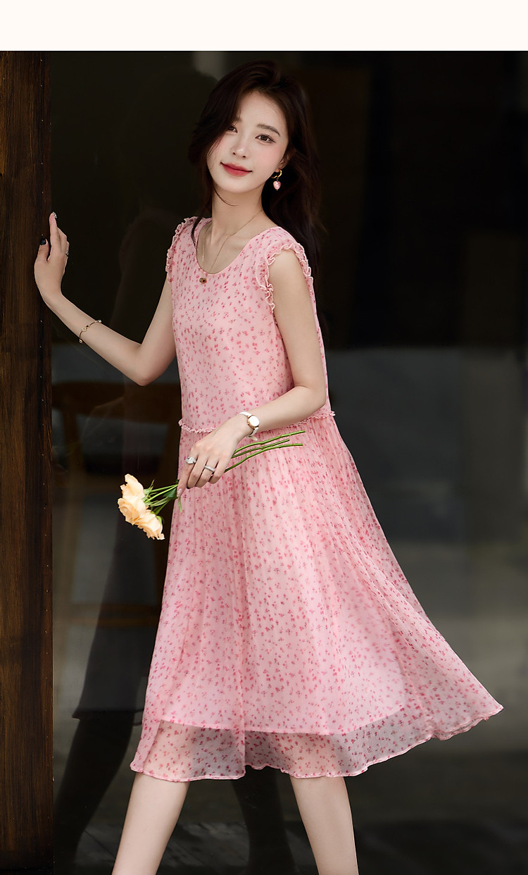 【御姐教科书】夏呼吸感桑蚕丝真丝抽褶无袖A字连衣裙女 880449