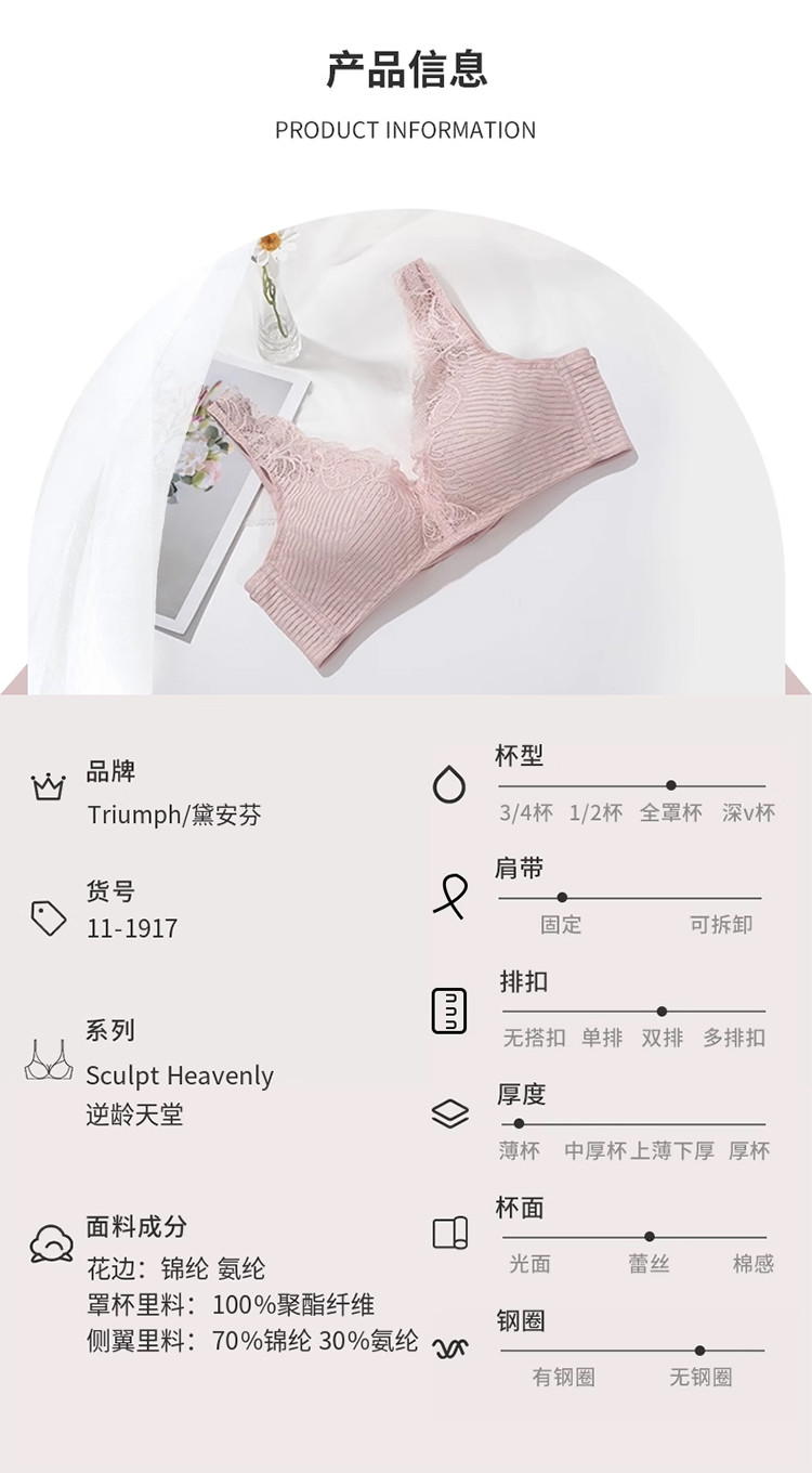 商品名称:黛安芬逆龄天堂大胸显小内衣女蕾丝侧收副乳文胸-11-1917 337482