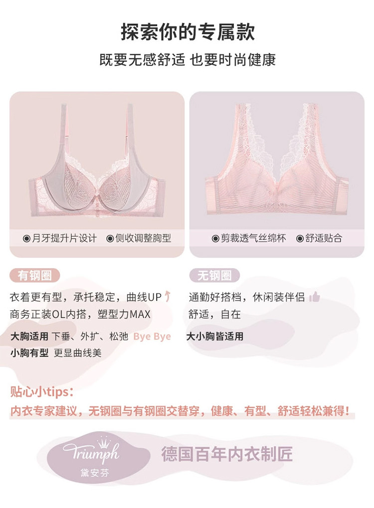 黛安芬逆龄天堂大胸显小内衣女蕾丝侧收副乳文胸-11-1917 337482