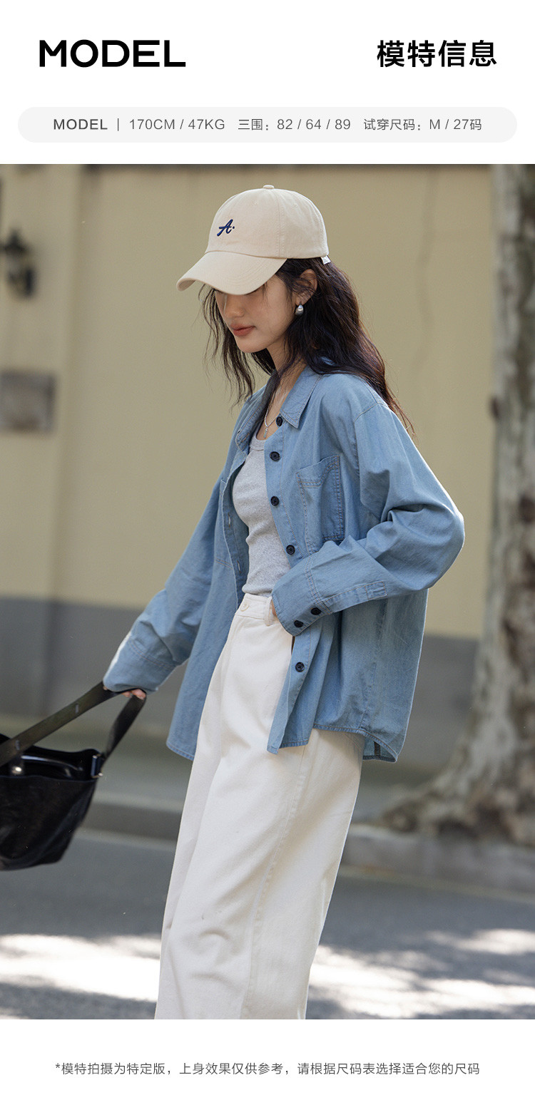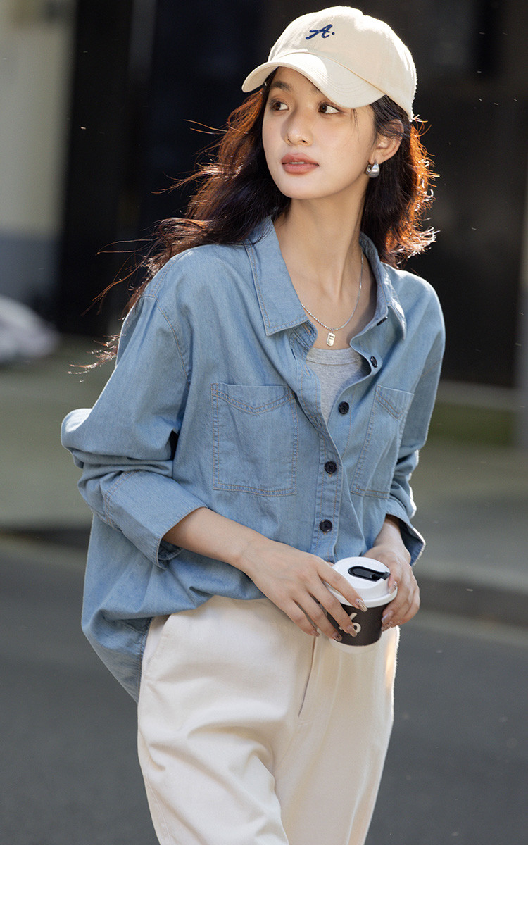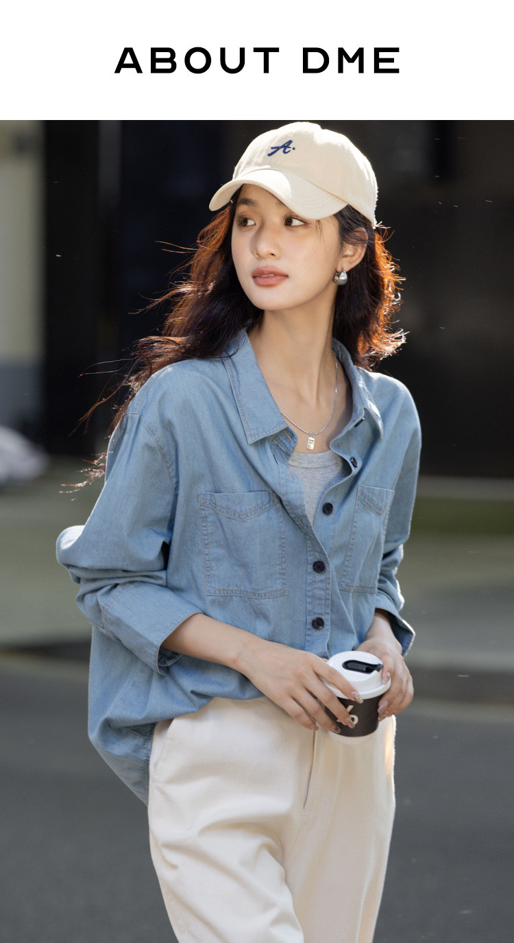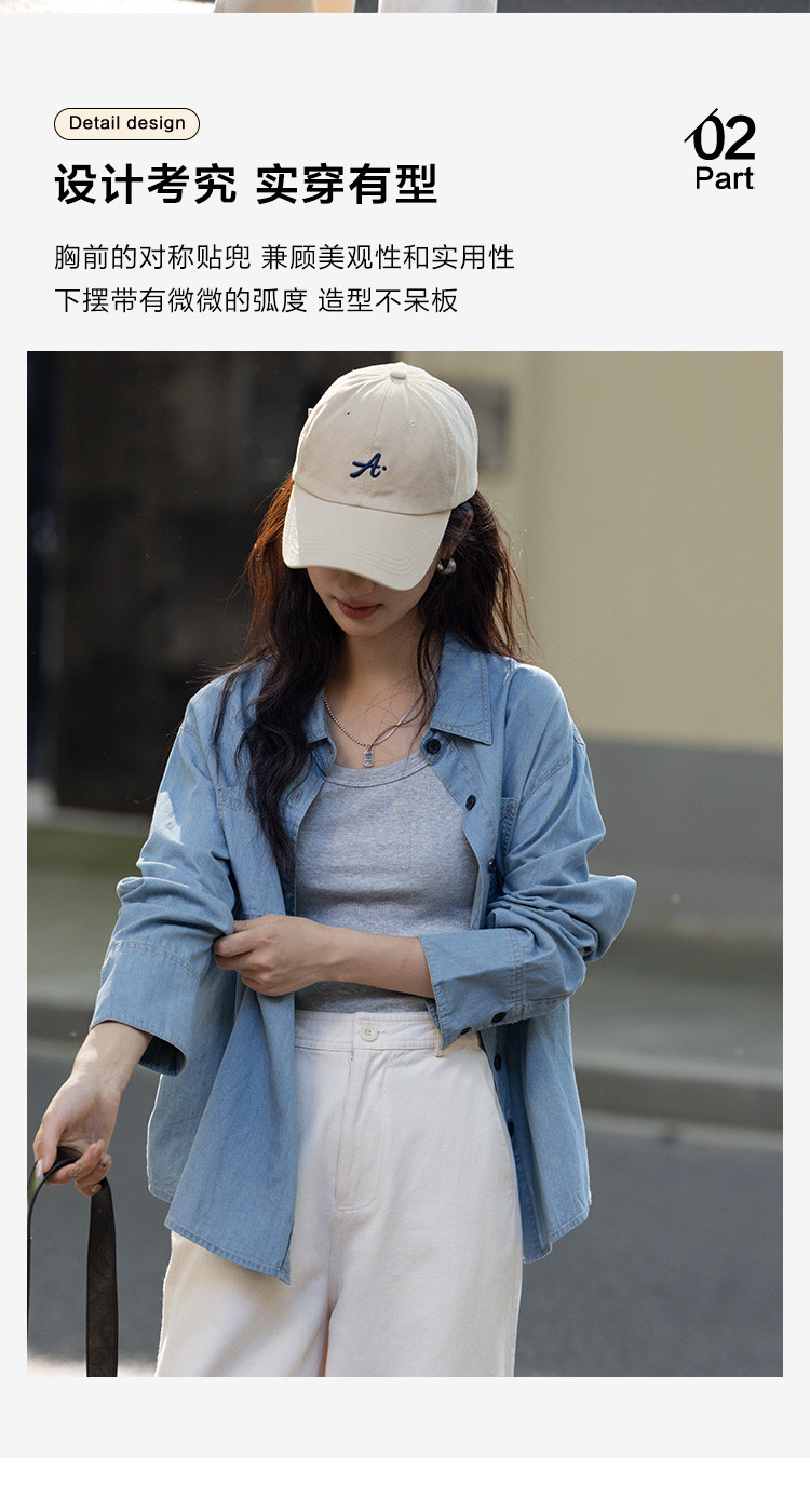 商品名称:【随性浅牛仔衬衫】秋款通勤多穿双口袋压线设计衬衫女 616386
