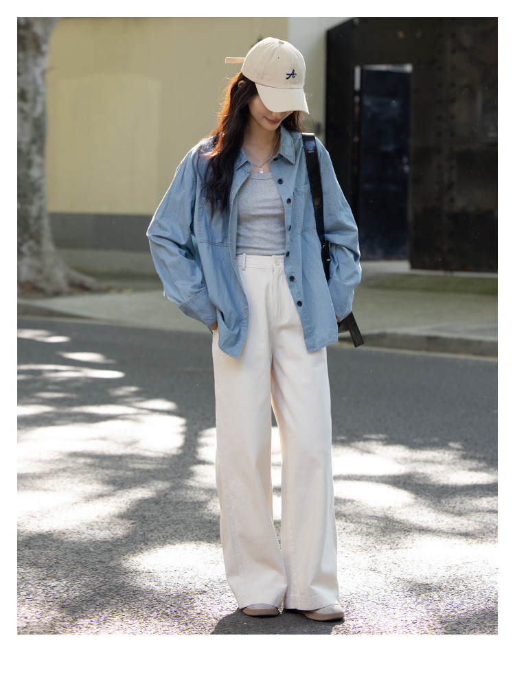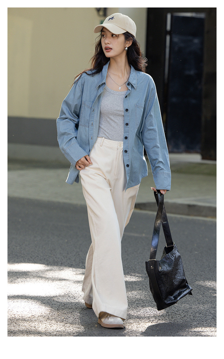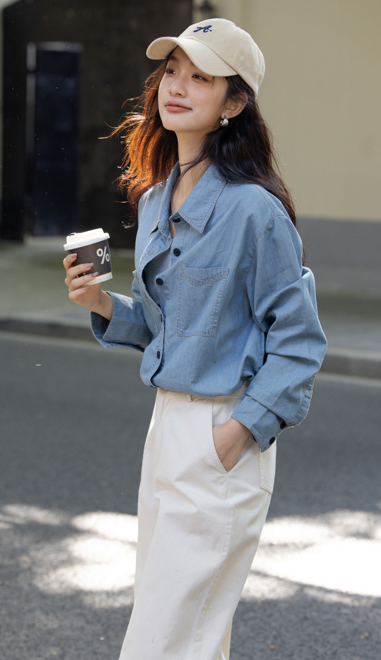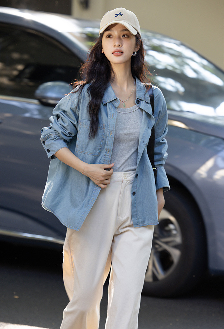 商品名称:【随性浅牛仔衬衫】秋款通勤多穿双口袋压线设计衬衫女 616386