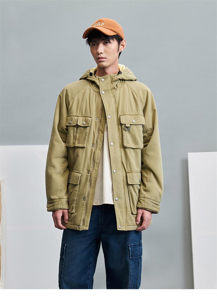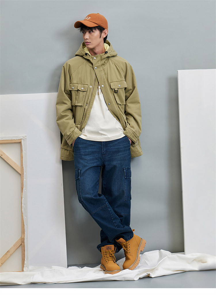 商品名称:Gap男装冬季LOGO工装多口袋连帽外套836565加厚保暖夹克 653466