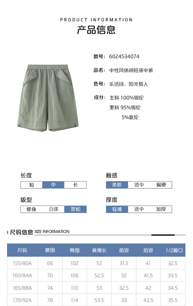 商品名称:【趣野系列】2024款夏季轻薄五分裤中性风户外运动直筒裤子女 487830