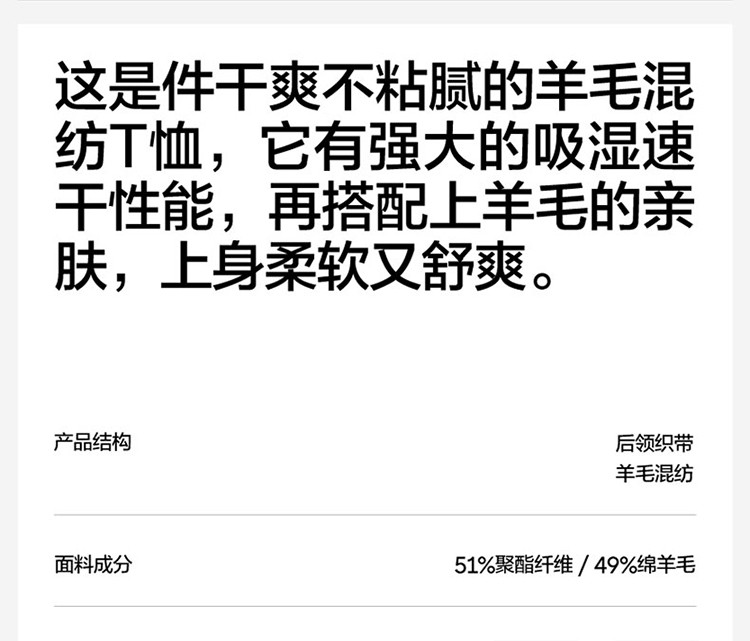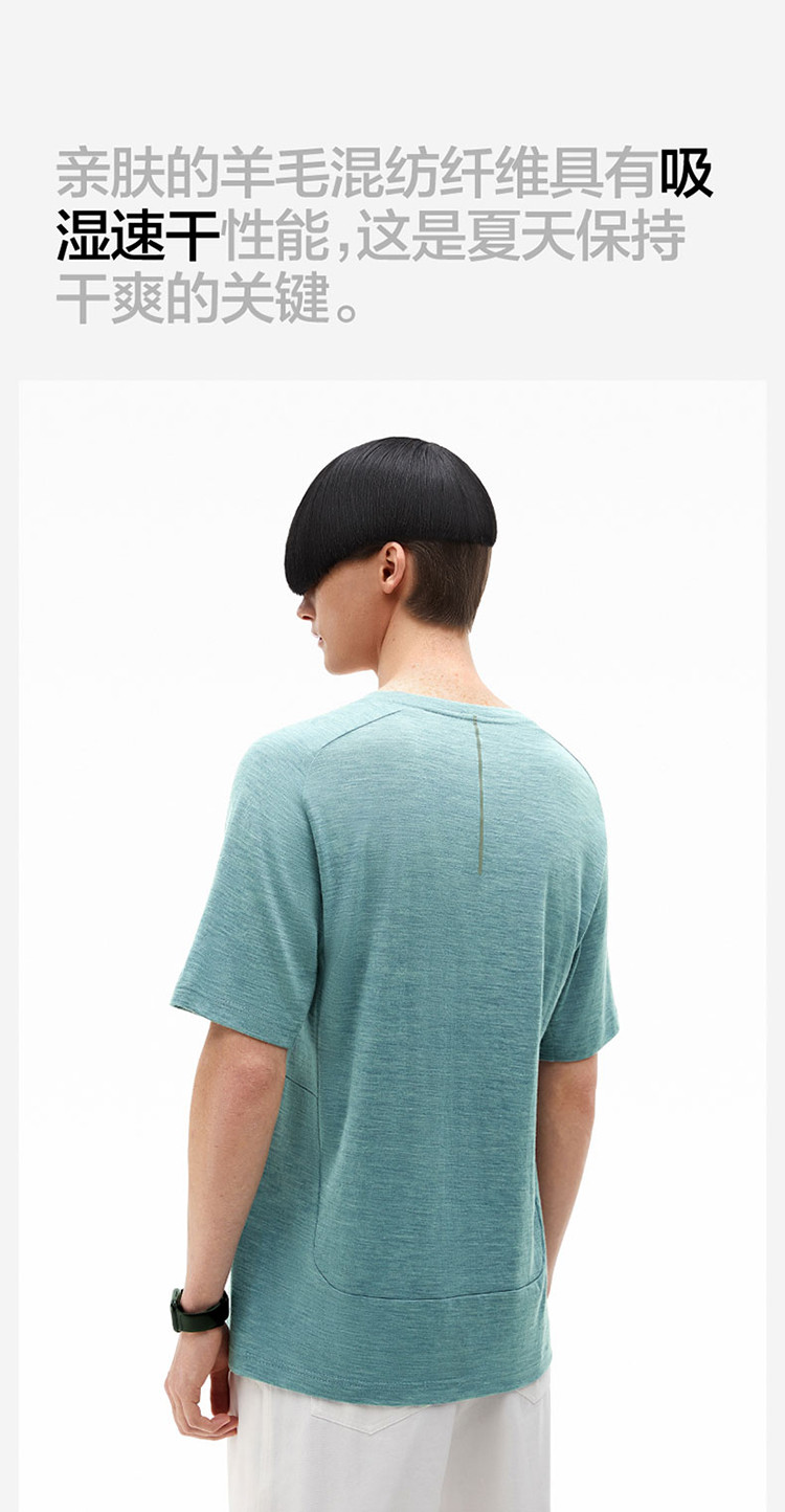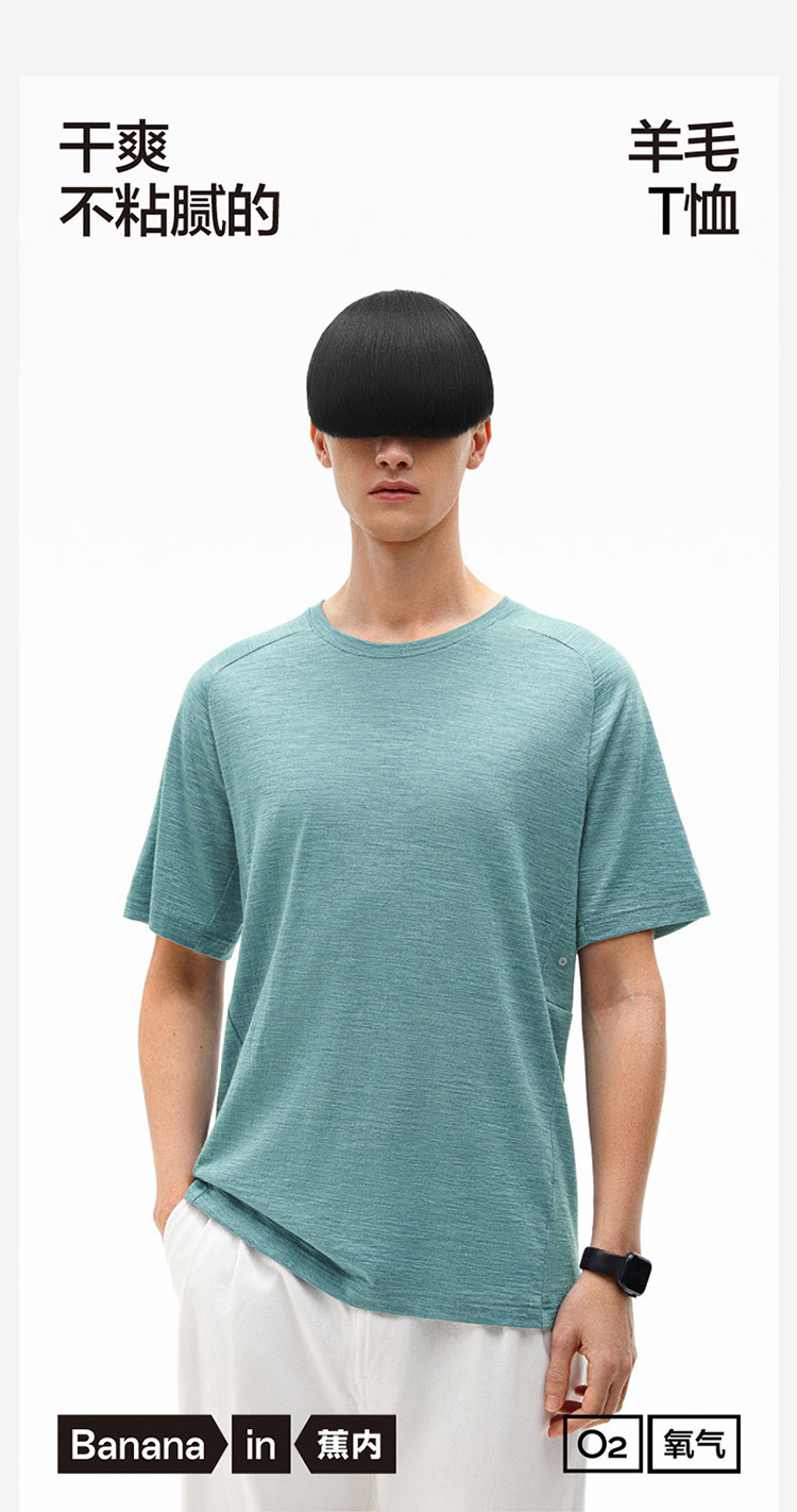 商品名称:蕉内氧气701Dry男士羊毛短袖透气吸湿舒适休闲简约宽松运动 548677