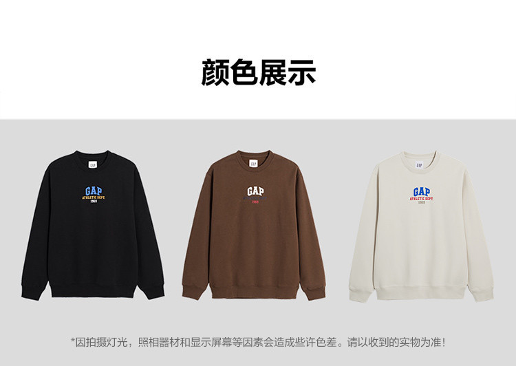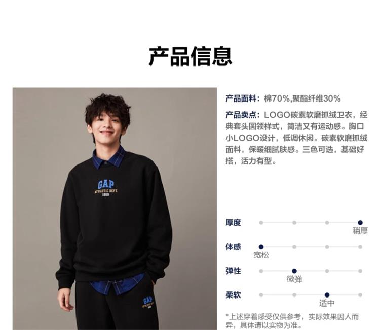 商品名称:Gap男女装春季LOGO碳素软磨抓绒卫衣柔软情侣装运动上衣841207 768026