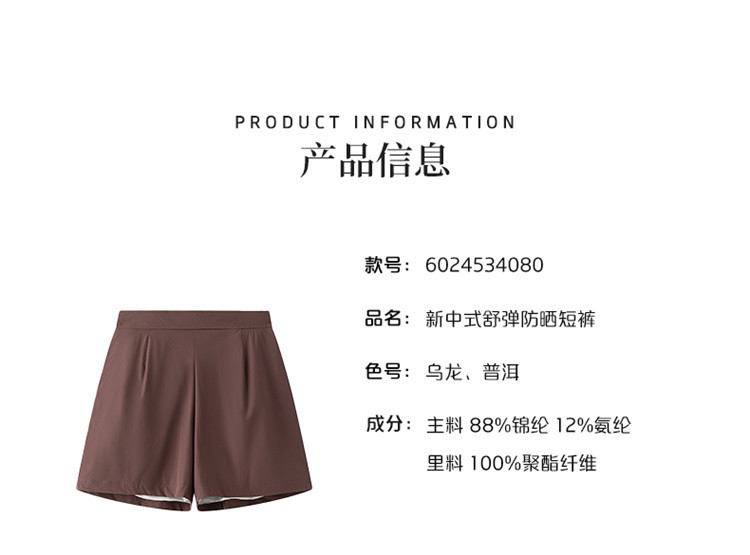 商品名称:UPF40+新中式防晒短裤女2024夏款高腰显瘦凉感阔腿裤女 033366
