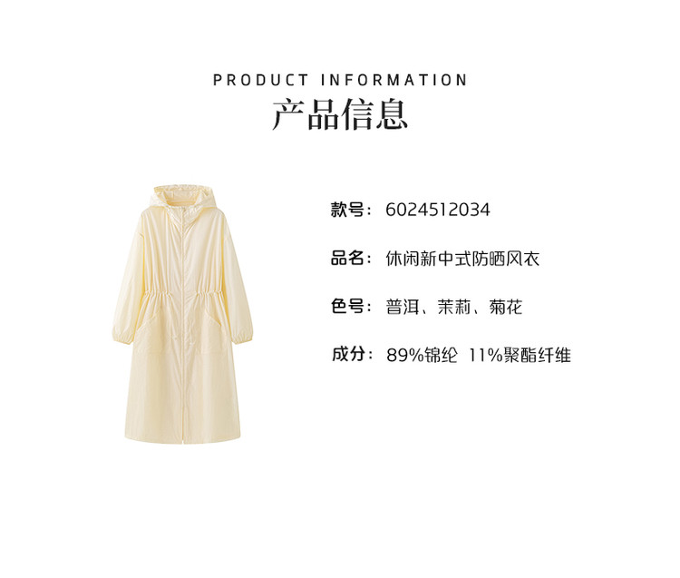商品名称:2024夏款休闲薄款风衣式全身防晒衣长款防晒服防紫外线外套女 844502