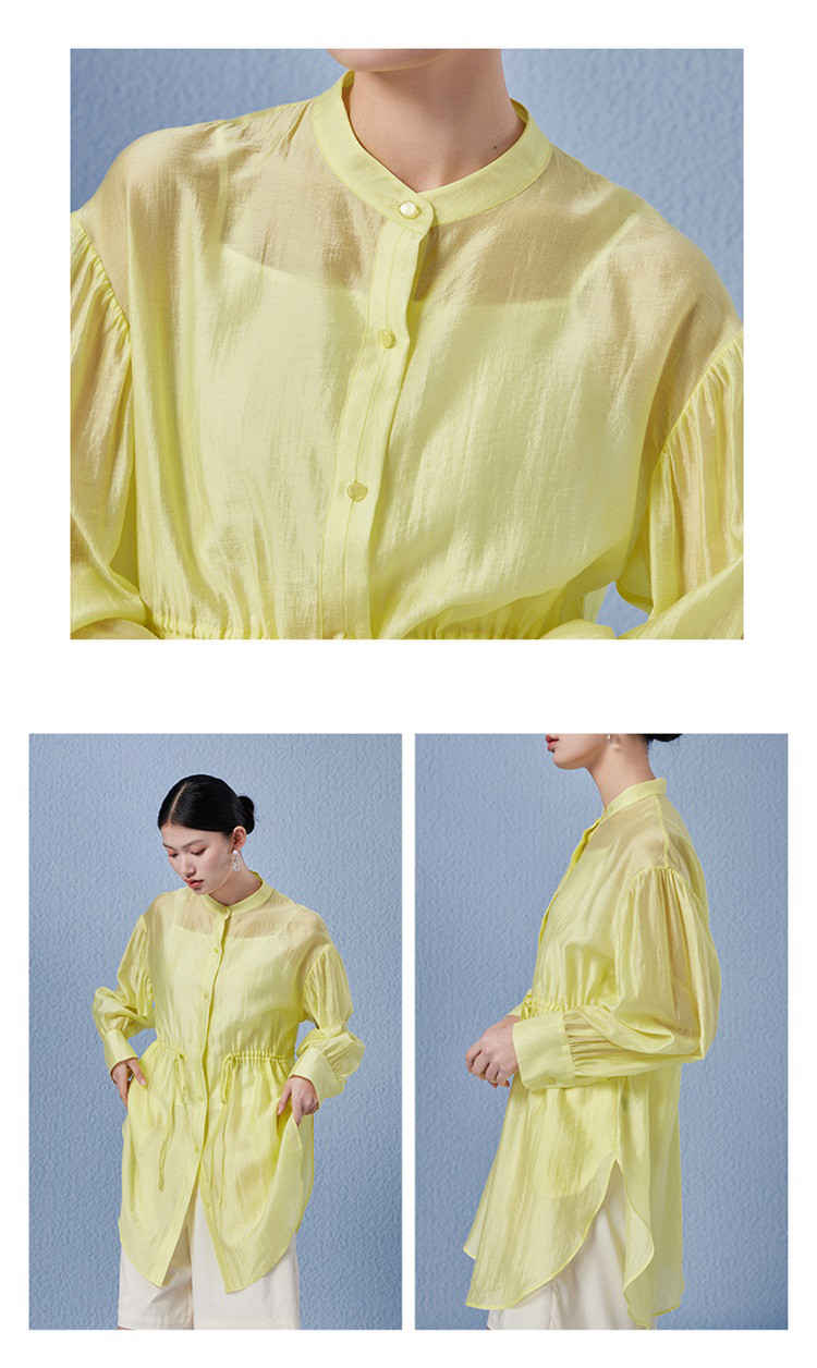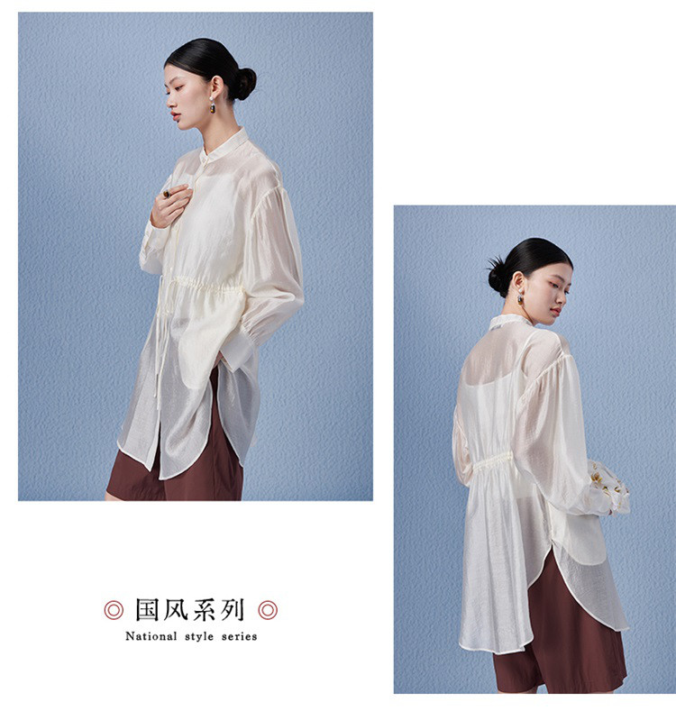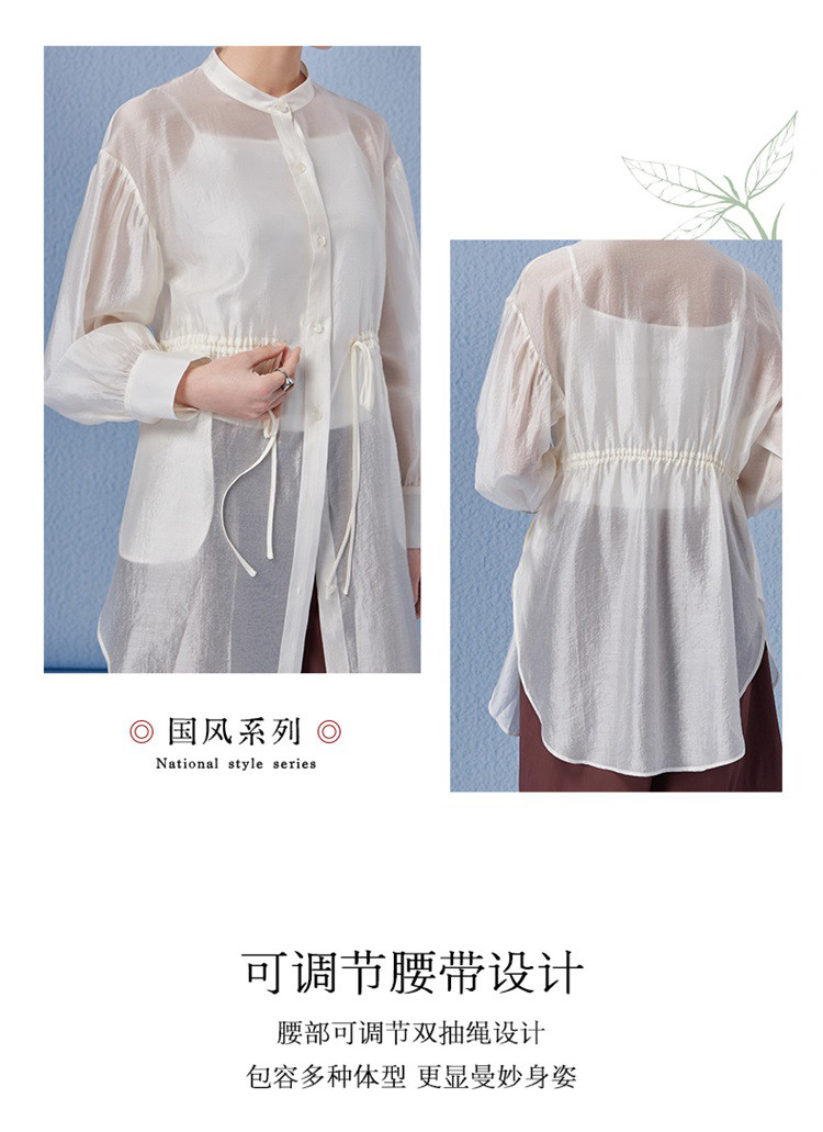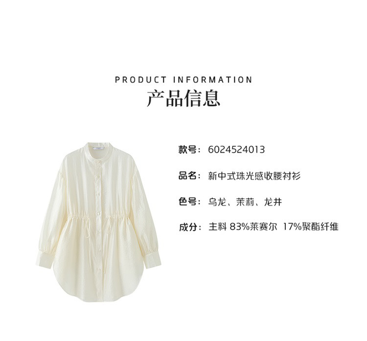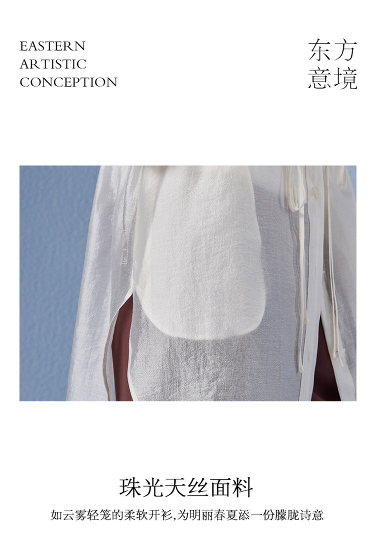 商品名称:新中式气质轻奢珠光天丝衬衫女2024款显瘦收腰薄款长袖外套 313942