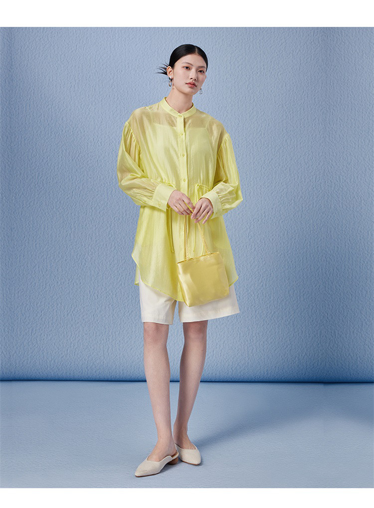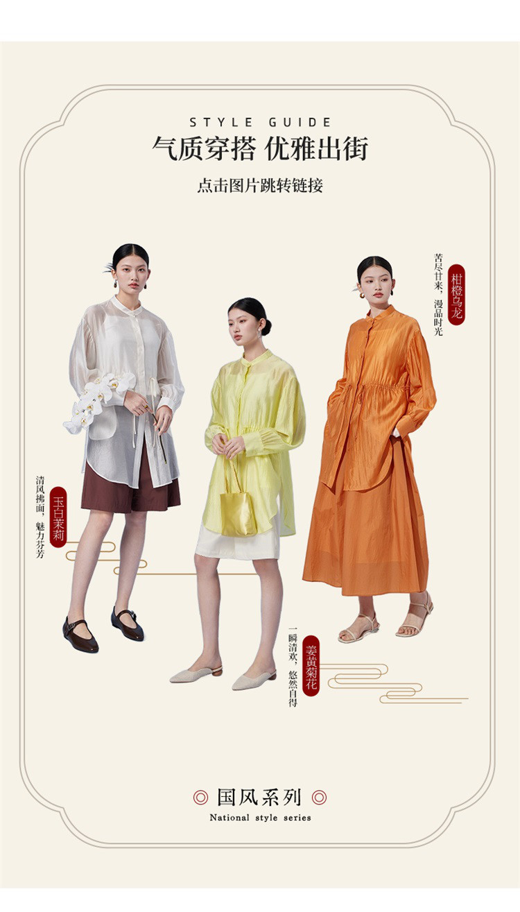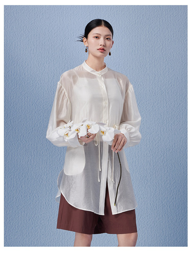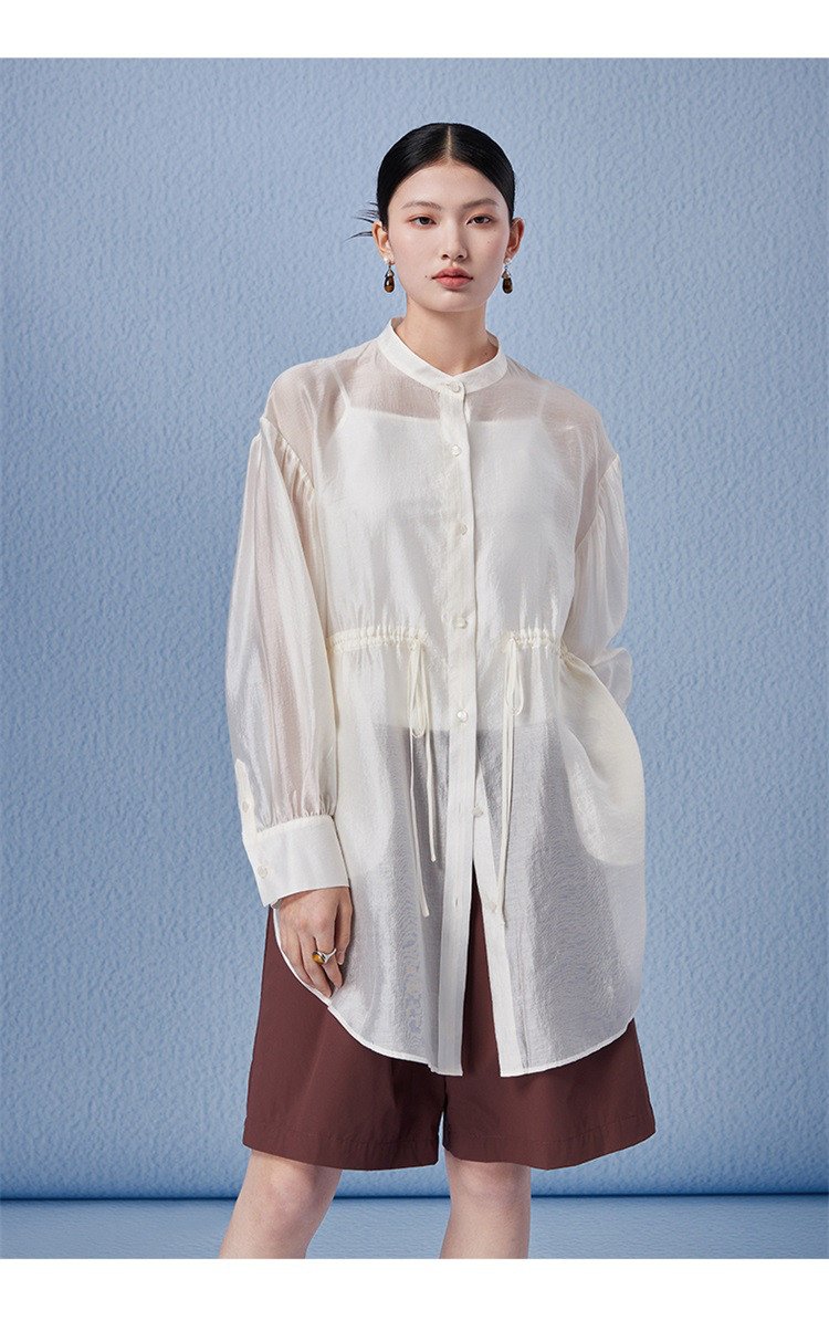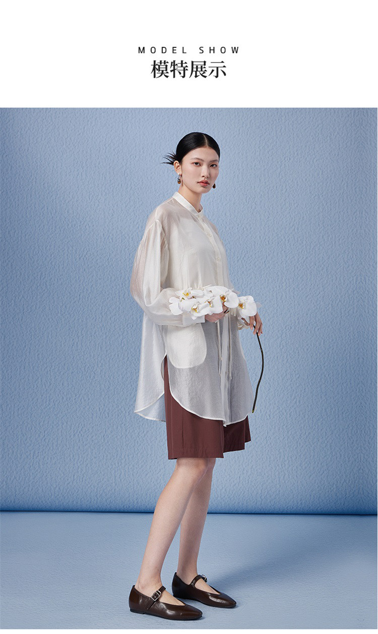 商品名称:新中式气质轻奢珠光天丝衬衫女2024款显瘦收腰薄款长袖外套 313942