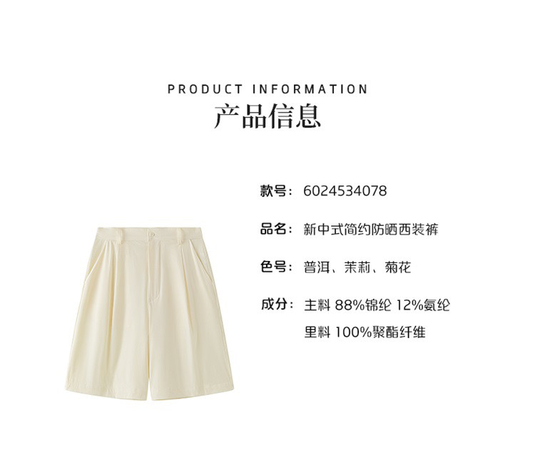 商品名称:【UPF50+】2024夏季凉感五分裤新中式防晒裤西装裤子女 659862